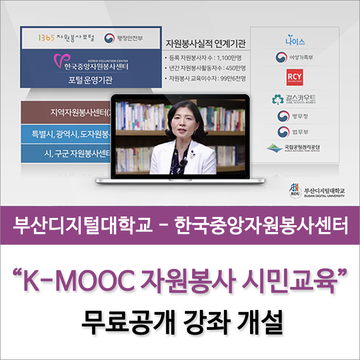 부산디지털대-한국중앙자원봉사센터, K-MOOC 자원봉사 시민교육 무료공개 강좌 개설