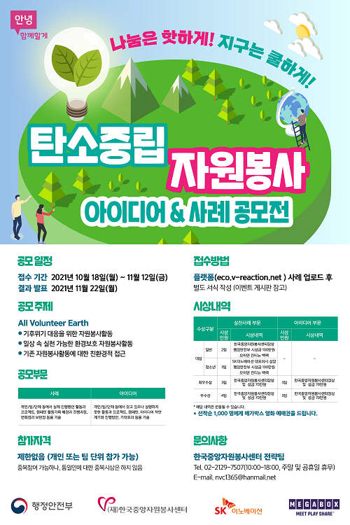 SK이노베이션, 메가박스와 연계해 기후위기 대응 자원봉사활동 사례‧아이디어 공모전을 개최할 예정이다.