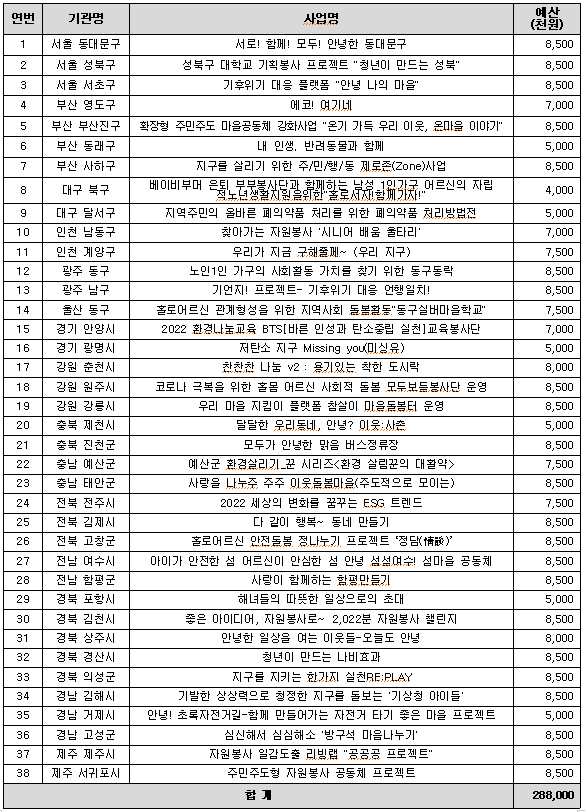 한국중앙자원봉사센터의 공고 제2022-01호 「2022 지역맞춤형 안녕캠페인 공모사업」공고 관련하여,