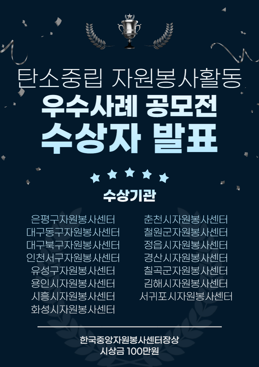 2022 탄소중립 자원봉사활동 우수사례 공모전에 참여해주신 모든 자원봉사센터에 감사드리며,