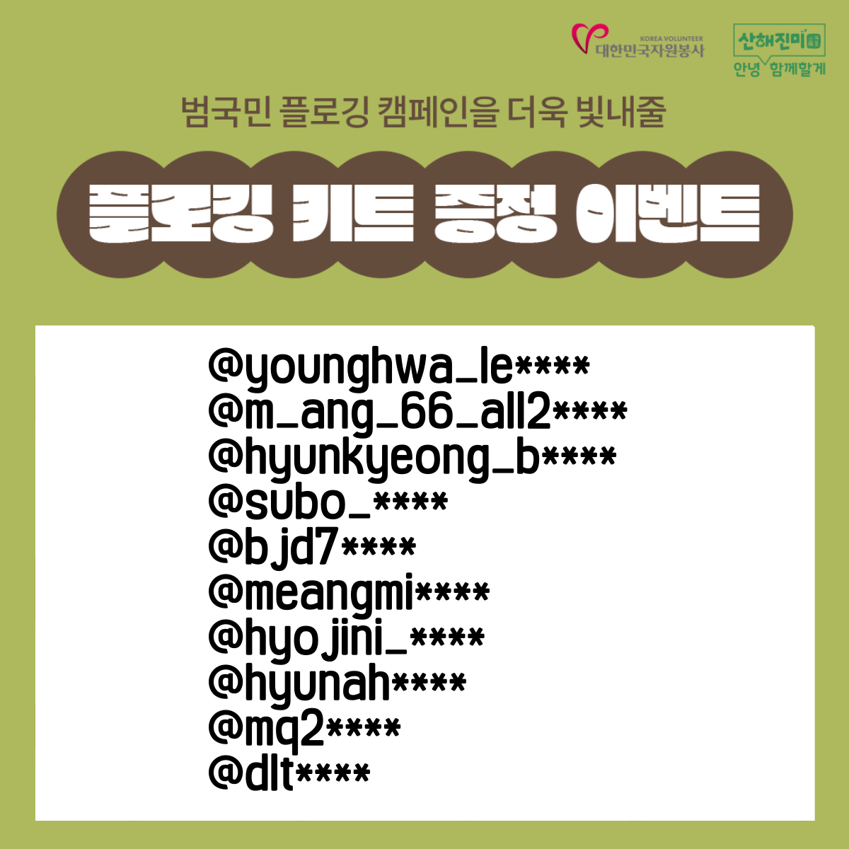 [당첨발표] 안녕! 산해진미 함께할게 이벤트 : 플로깅 키트 증정 2회차
