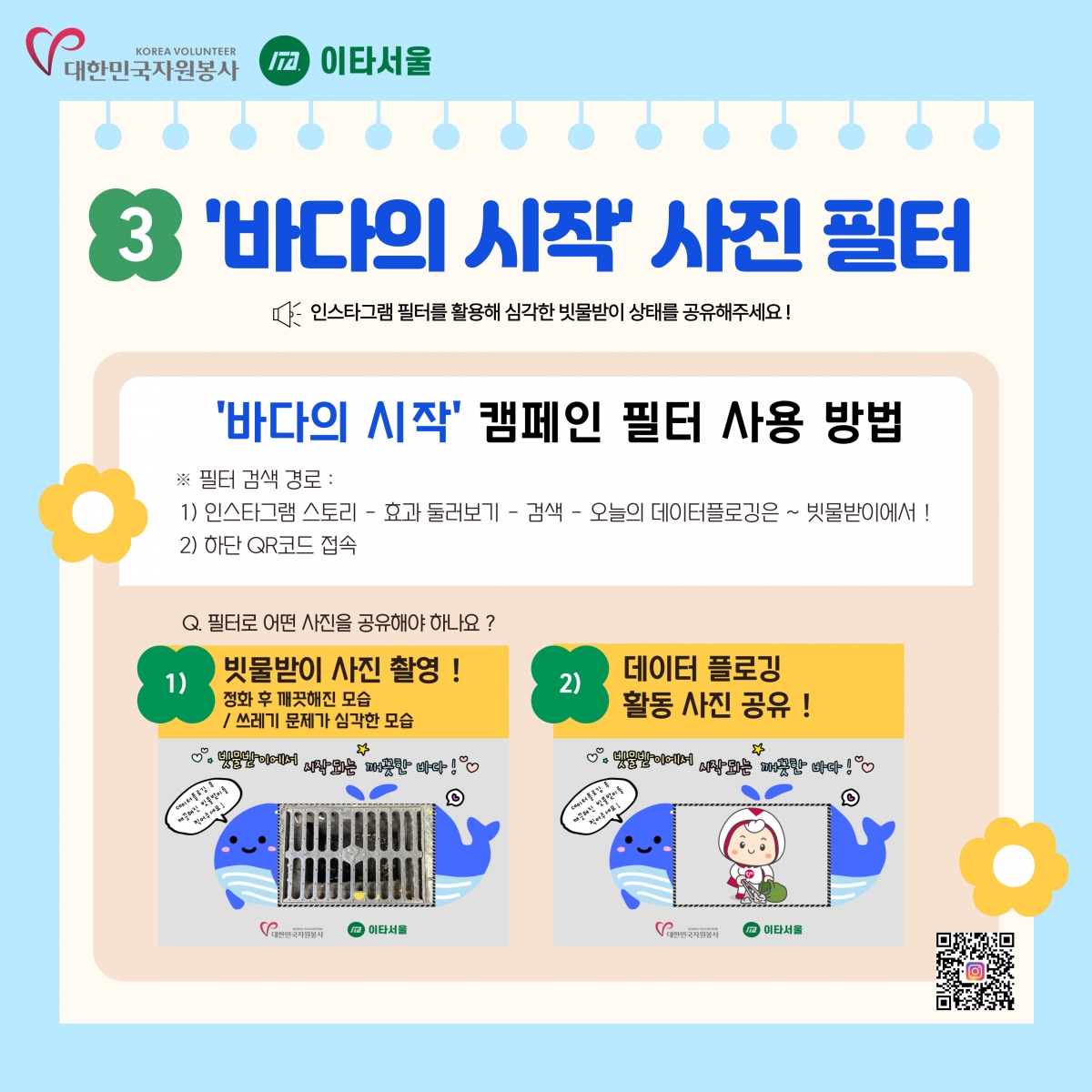 공지사항 [공지] 빗물받이에서 시작되는 깨끗한 바다, 바다의 시작 캠페인 추가 참여방법 안내 2024.06.18 관리자 이전글 [공지] 안내 목록 다음글 [공지] 자원봉사아카이브 개선을 위한 설문조사