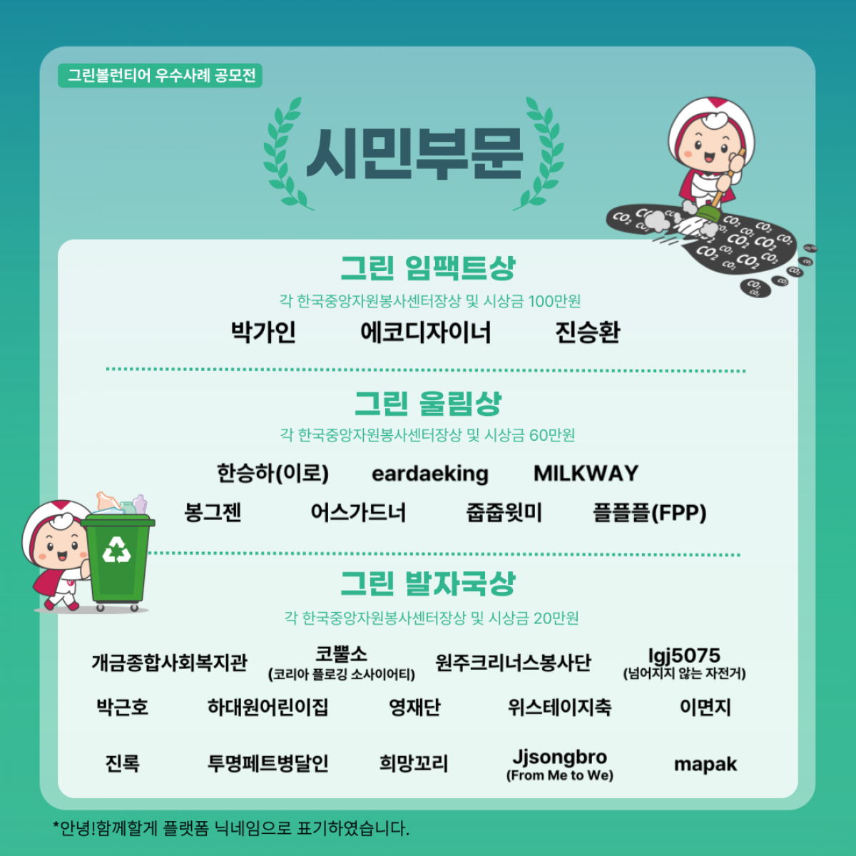 [2024 그린볼런티어 우수사례 공모전 수상 결과 공고]