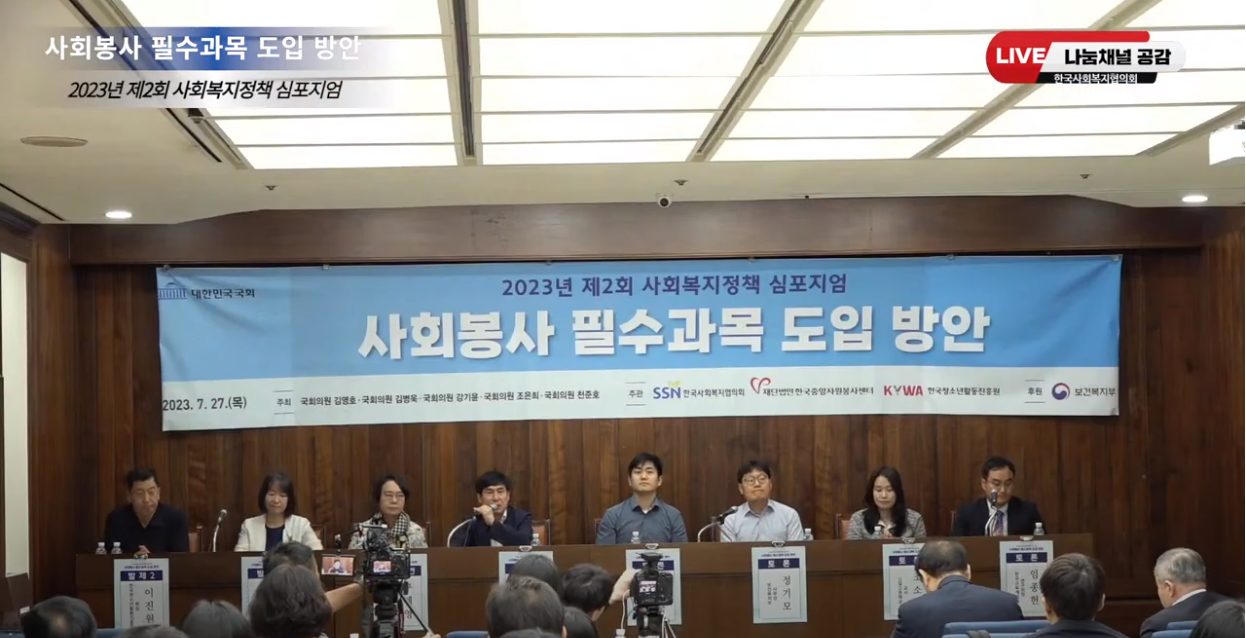 2023년 제2회 사회복지정책 심포지엄 「사회봉사 졸업필수과목 도입 방안」 개최