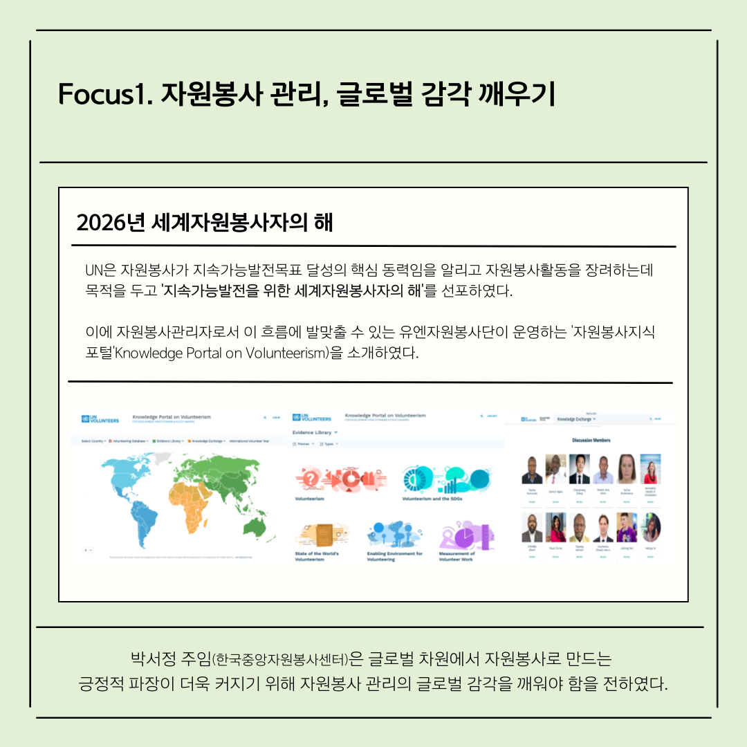 지속가능한 미래를 만들기 위한 자원봉사의 역할, 변화의 중요한 지점들, 그리고 대회를 통해 발견된 글로벌 자원봉사 트렌드와 생생한 비하인드 스토리까지 담았습니다.