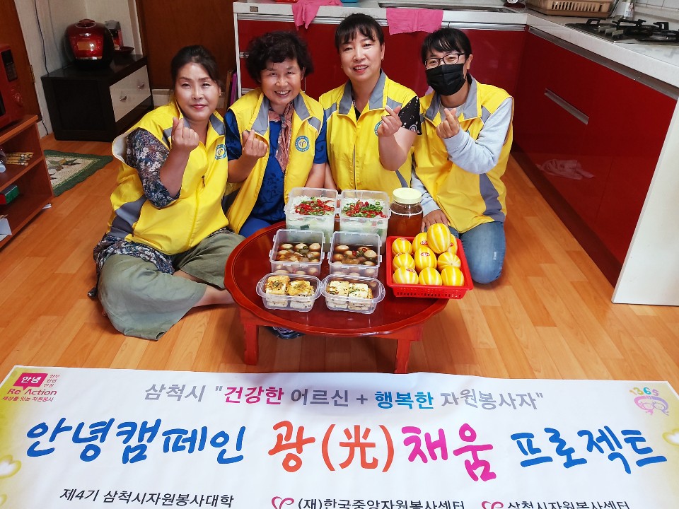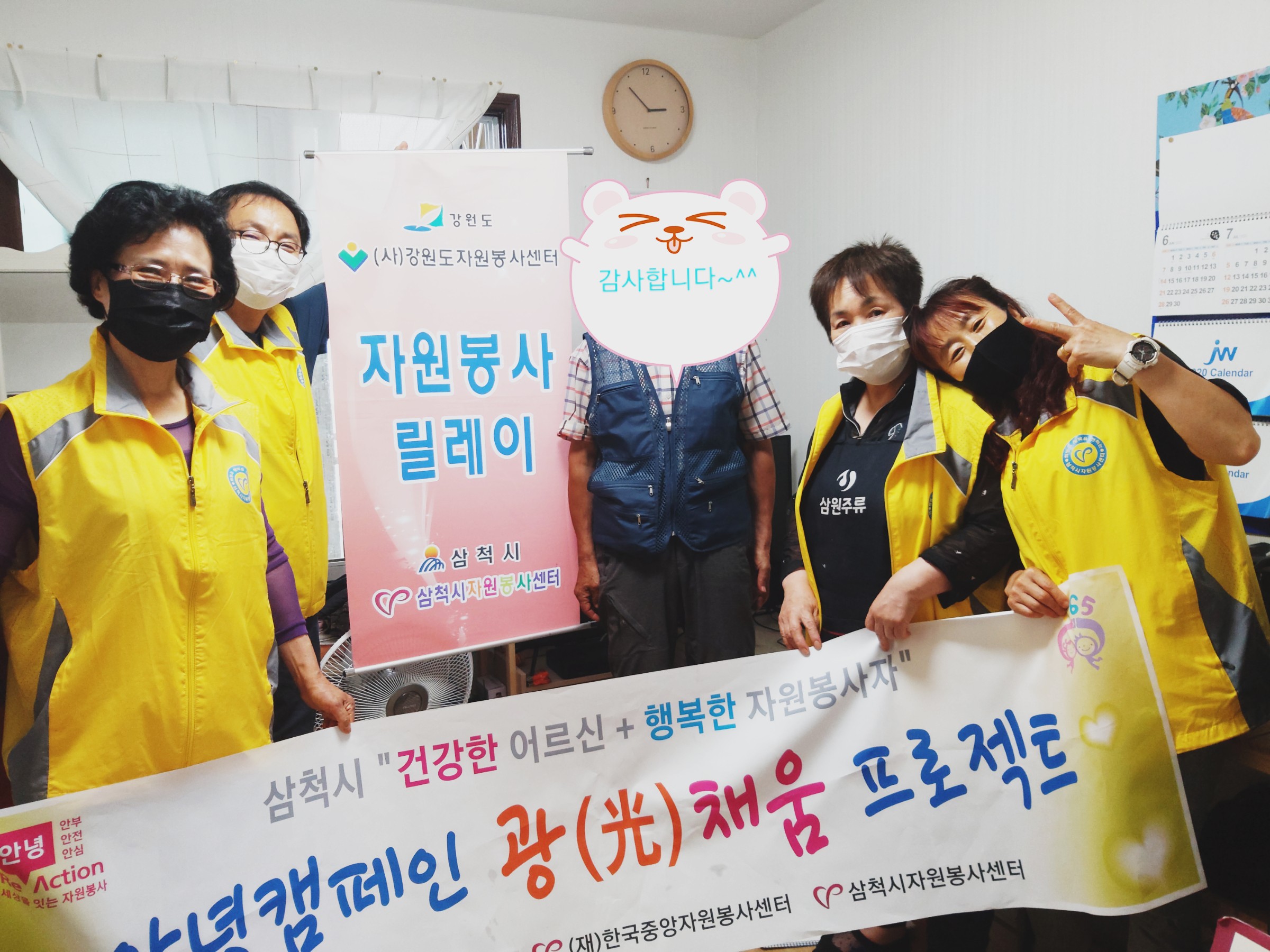 강원도 삼척시 자원봉사센터에서는 2019년도 이후 자원봉사자의 아이디어, 자원봉사 관리자의 컨설팅, 지역 내 대학이나 기업 등 유관기관의 협력으로 만들어진 우울감을 경험하는 어르신을 대상으로 자원봉사자&대상어르신 상호맞춤형 재능나눔 자원봉사 [삼삼한 인생, 광(光)채움 프로젝트]를 진행하였습니다.