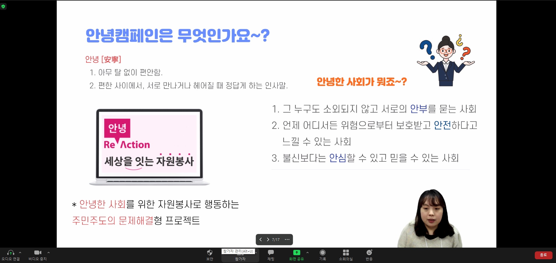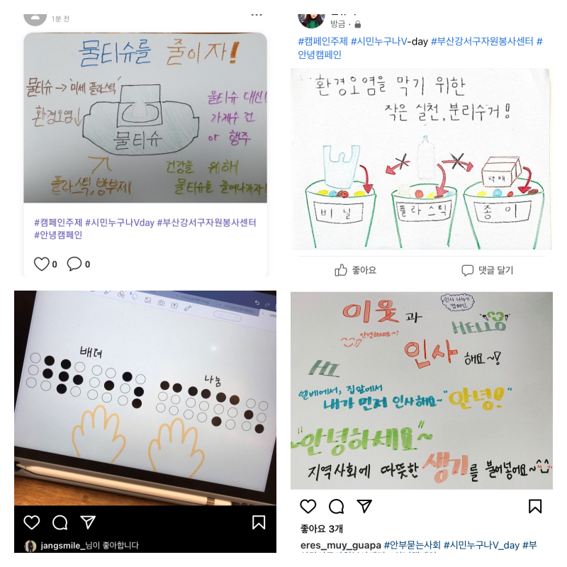 1. 안녕캠페인에 대한 안내와 관련 봉사 활동을 소개하고