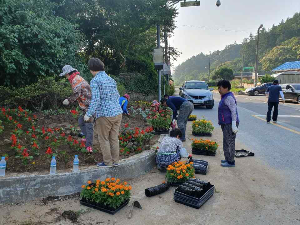 - 분리수거대를 설치하고, 마을 진입로에 꽃묘를 심습니다.