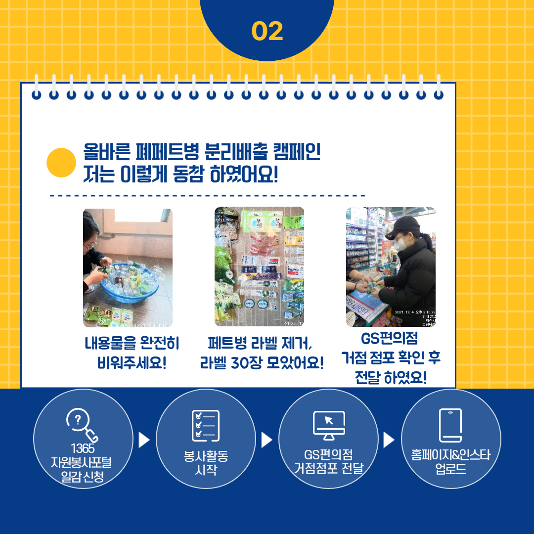 자원봉사자 스토리 [충남 아산시] 생활 속 작은 실천 탄소중립 올바른 폐페트병 분리 배출 캠페인 관리자 2021.12.29 1399 생활 속 작은 실천 탄소중립 올바른 폐페트병 분리 배출 캠페인 이전글 [충남 아산시] 안녕! 일상 속 작은 실천 클린아산DAY 함께 할게! 캠페인 목록 다음글 [충남 아산시] 안녕! 일상 속 작은 실천 클린아산DAY 함께 할게!