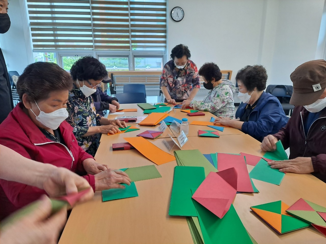 딱지와 팽이 접어 유치원에 전달, 오란다와 부채, 레진아트 빗 만들어 푸드뱅크에 전달했습니다.