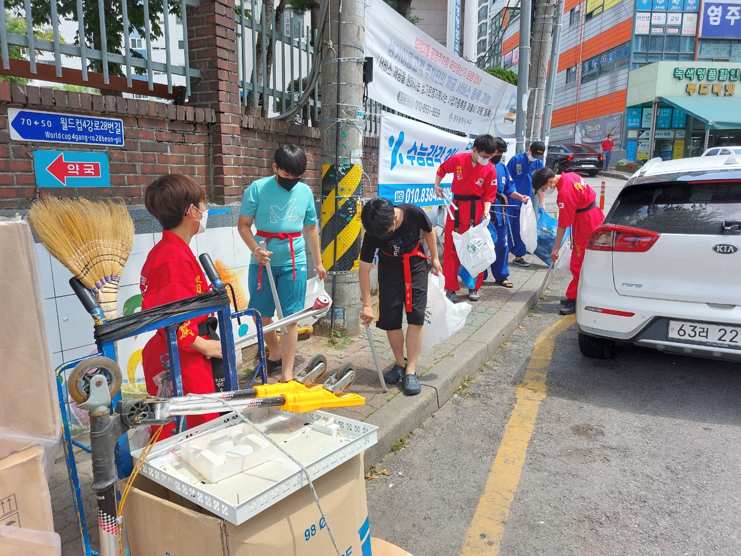 깨끗이 씻어 염주해동검도 도장으로 가져오고