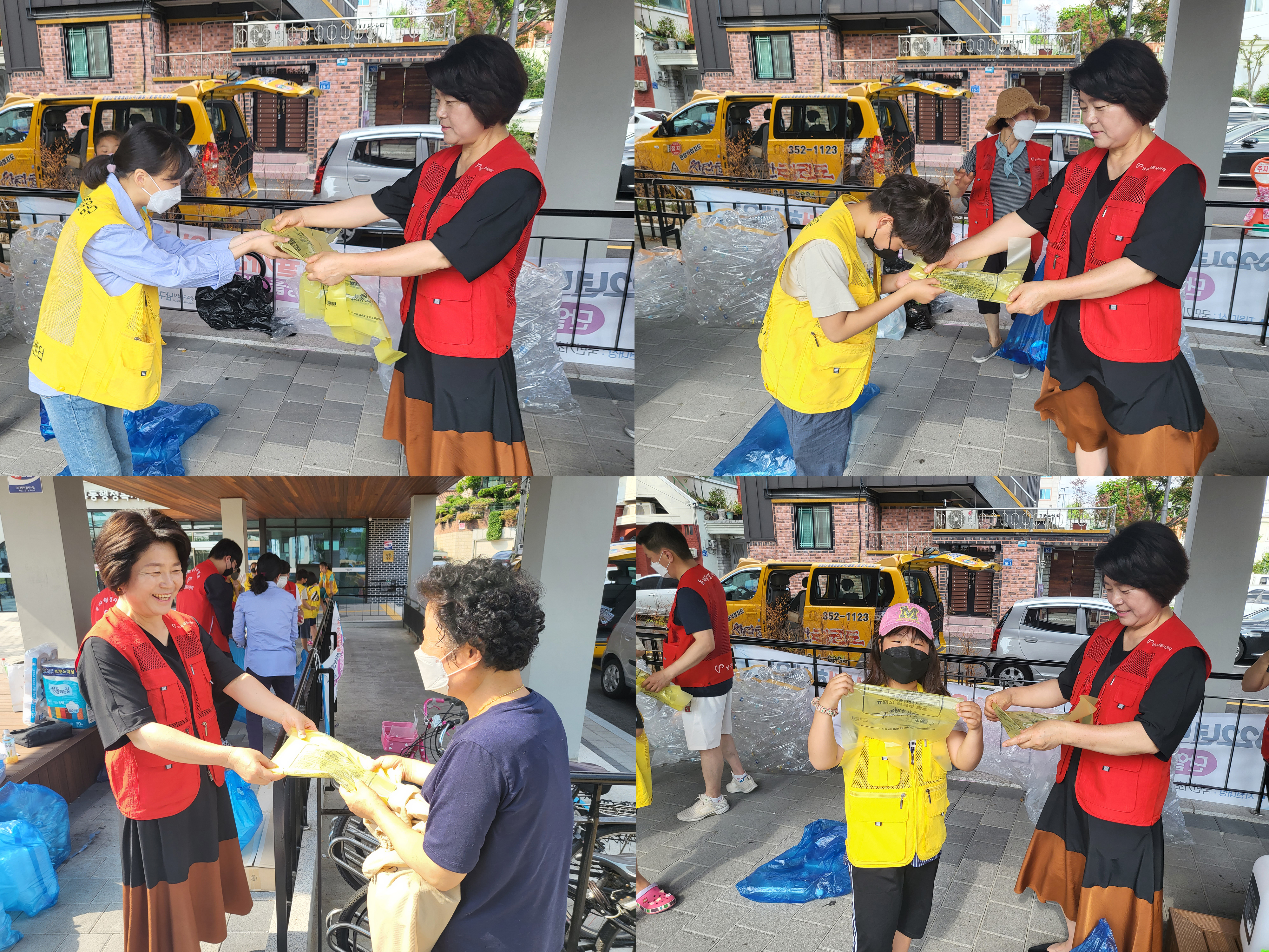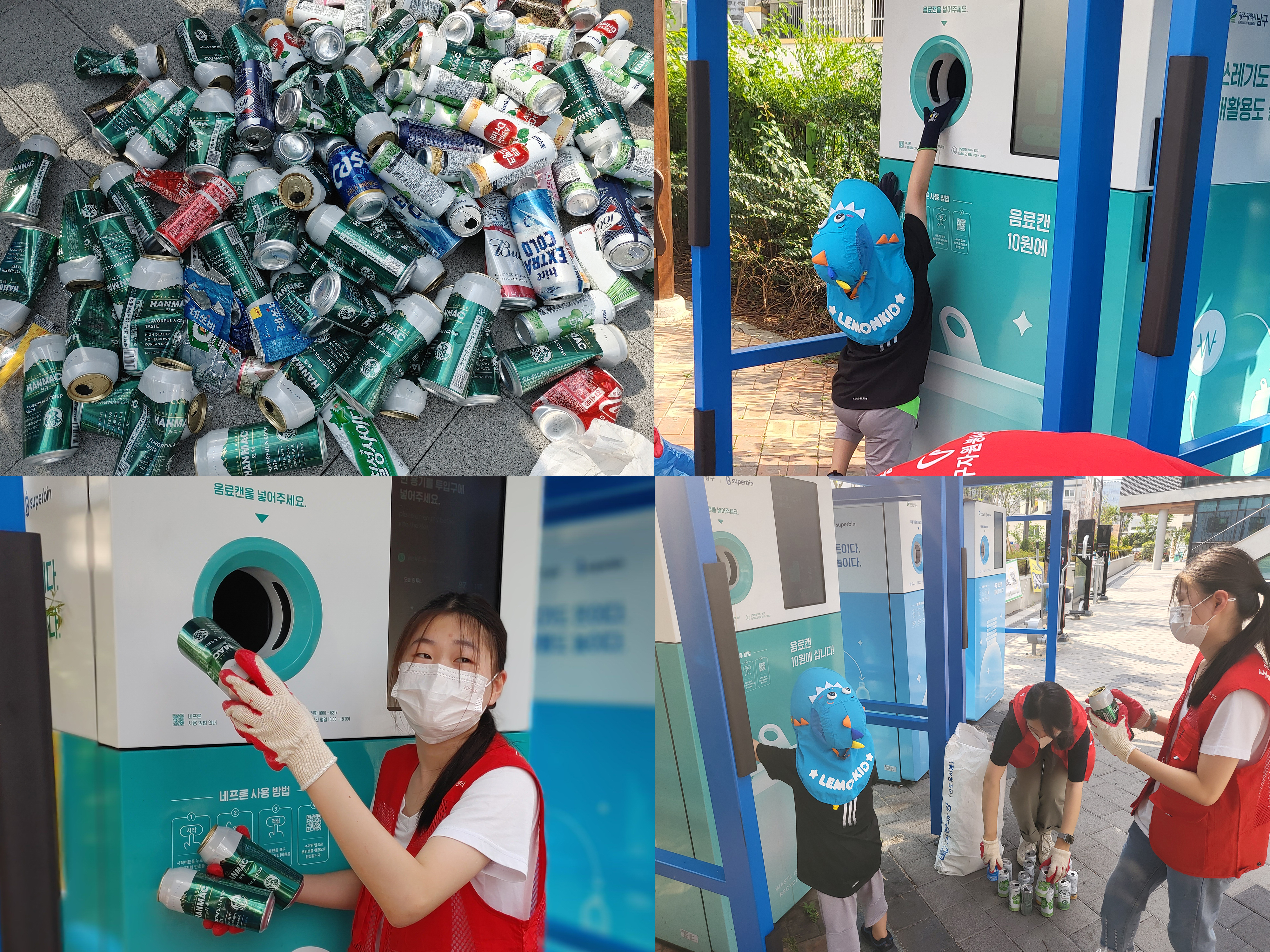 투명페트병, 음료캔, 우유팩을 가져오는 주민들에게
