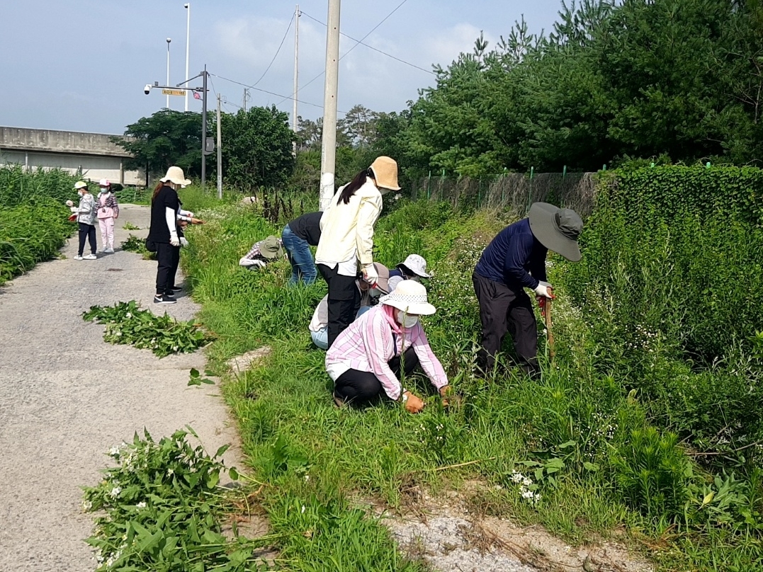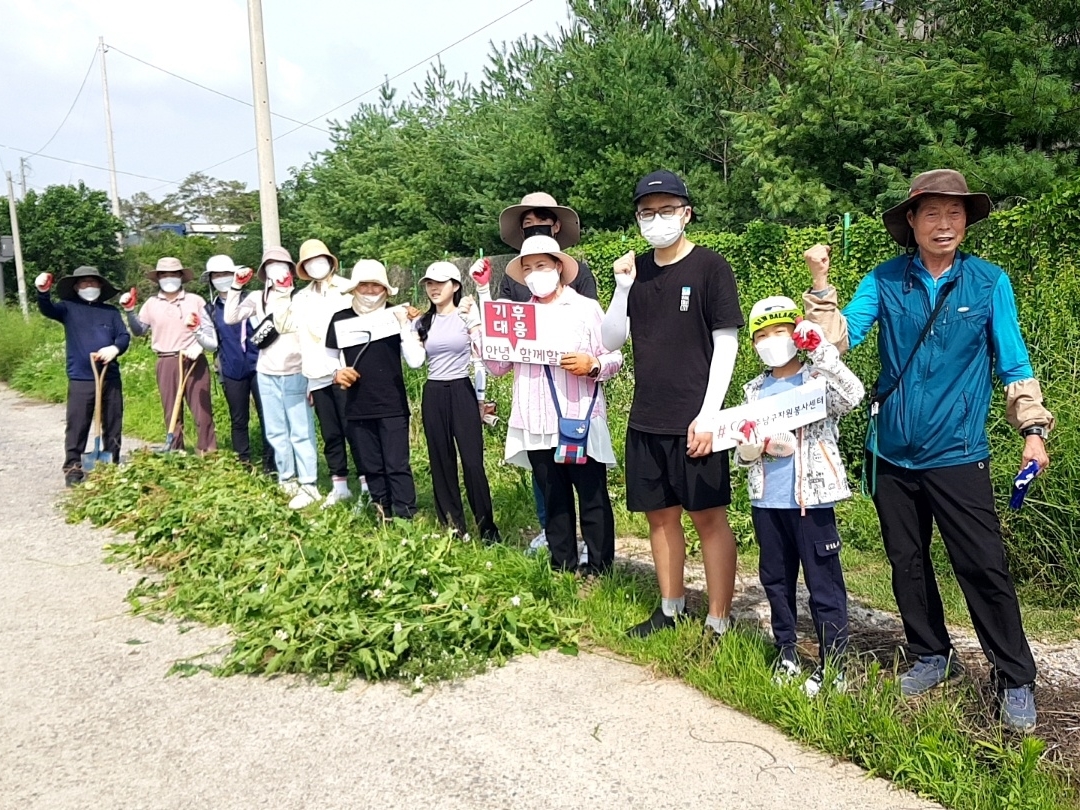 대촌천 주변 유해식물 퇴치활동을 했습니다.