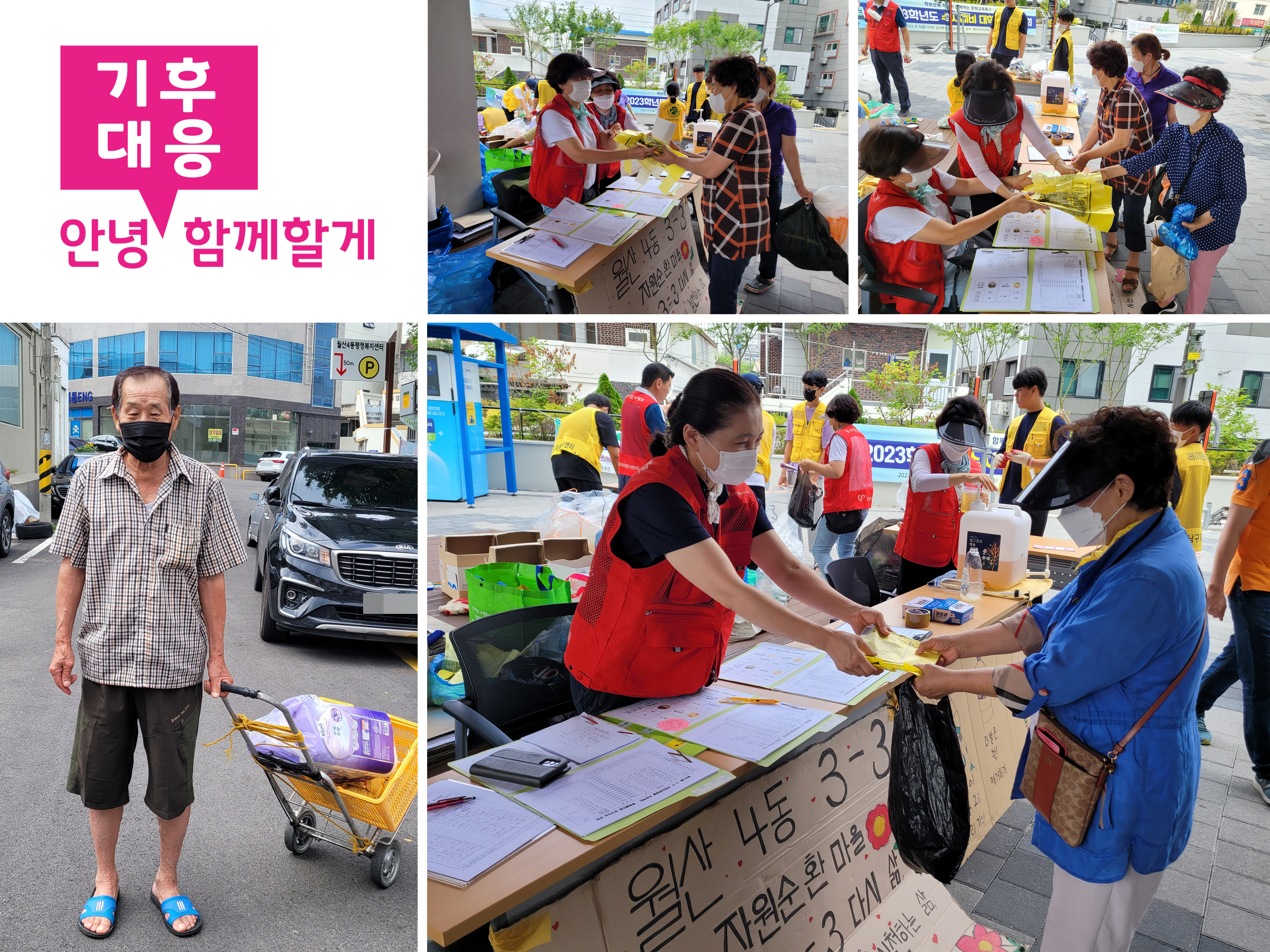 투명페트병, 음료캔, 우유팩을 가져오는 주민들에게