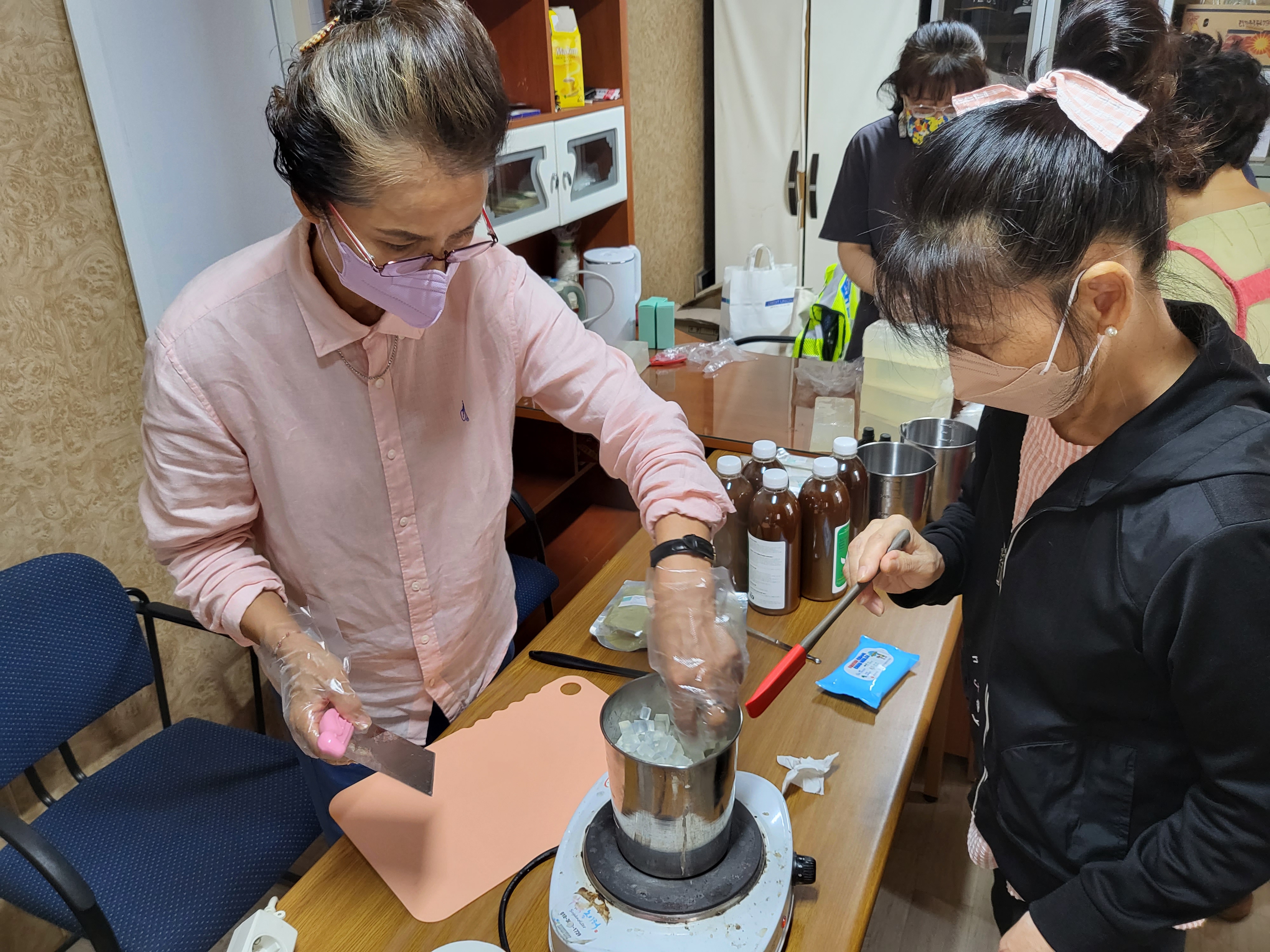 친환경 비누를 지역 주민들과 함께 만들었습니다.