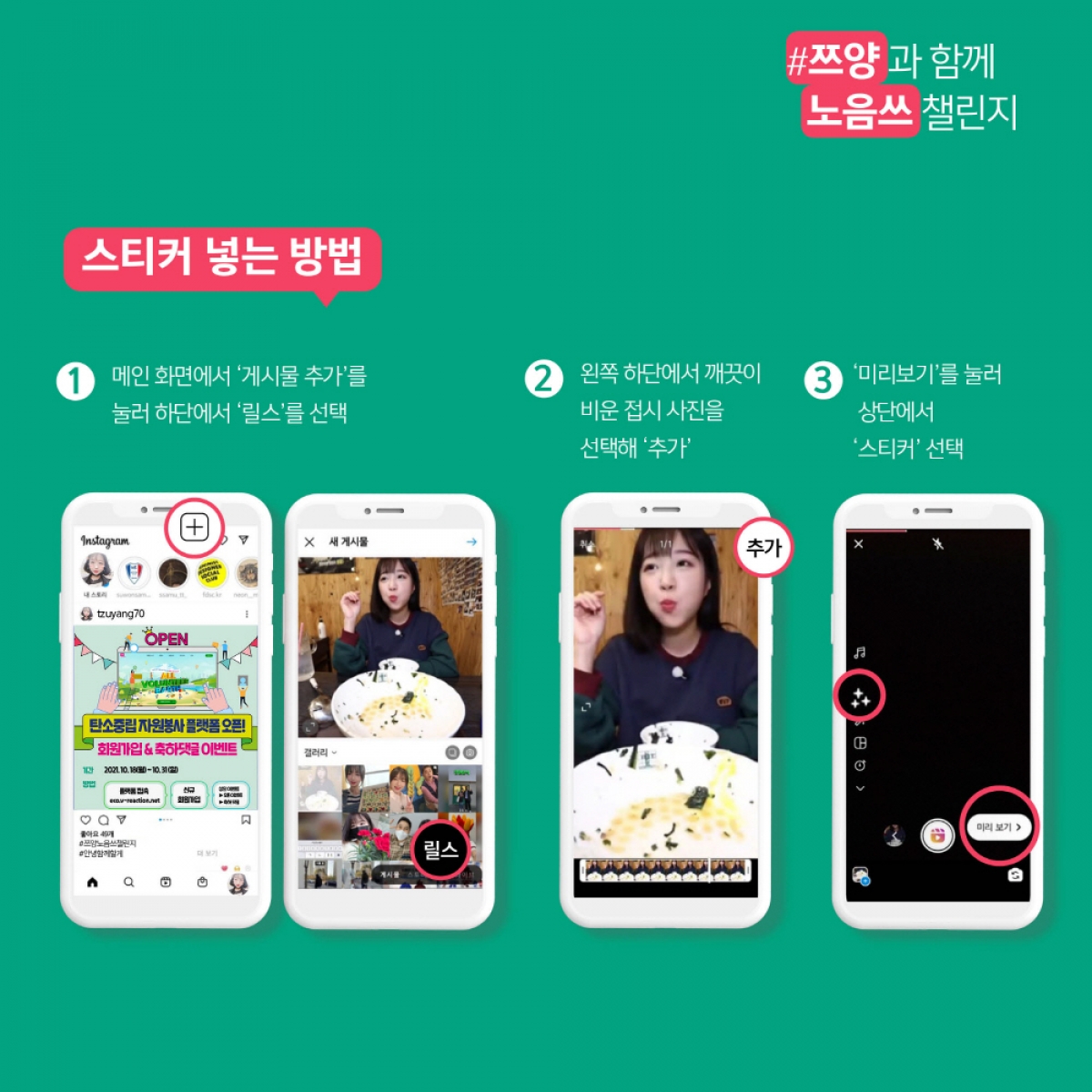 주요행사 [2021] 유튜버 쯔양과 함께하는 NO음쓰 챌린지 2021.11.01 ~ 2021.11.30 한국중앙자원봉사센터 총 1개의 댓글이 있습니다. 하하하핳 2021.11.08 15:55 쓰레기 줍기 이전글 [2022] 안녕! 산해진미 함께할게 이벤트 : 1회차... 목록 다음글 [2021] 안녕! 산해진미 함께할게 3회차 이벤트...