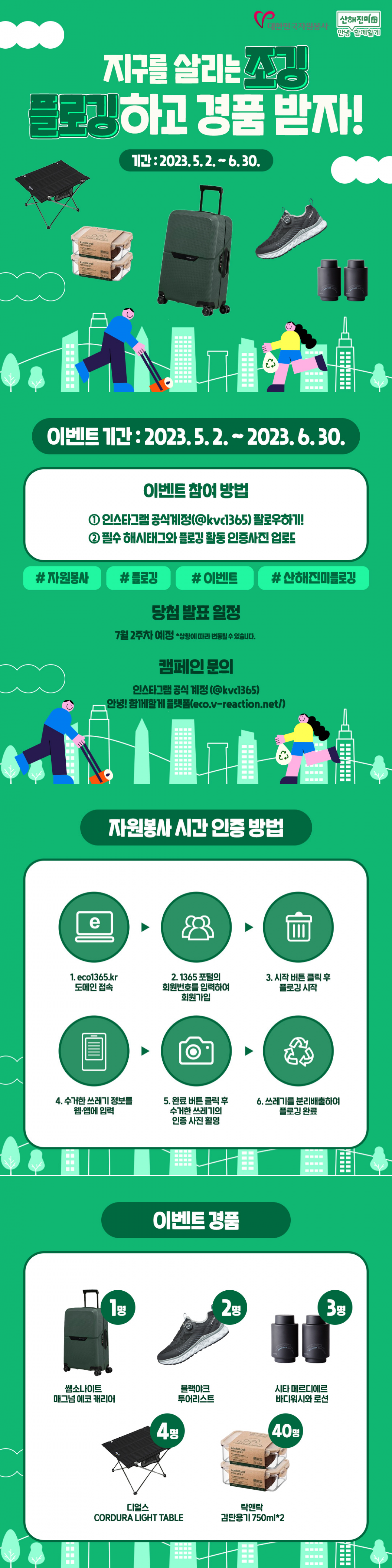 주요행사 [2023] 안녕! 산해진미 함께할게 이벤트 : 1회차 2023.05.02 ~ 2023.06.30 한국중앙자원봉사센터 안녕! 산해진미 함께할게 1회차 이벤트 홍보물.zip 총 2개의 댓글이 있습니다. 박근호 2023.06.22 12:09 바다는 쓰레기장이 아니건만 심각한 해양쓰레기 문제를 해결하기 위해서는 현장에서 청소도 중요하지만 쓰레기가 많은 모습을 알리는것도 꼭 필요합니다. 다양한 분야의 자원봉사자 (대학생 기업 자영업 개인)들이 참여하여 바다에서 나오는 쓰레기는 미세플라스틱으로 바뀌기 전에 쓰레기 청소활동을 계속해서 진행하고 있답니다. 현장에서 청소하고 난 후 쓰레기 버리지 않기 홍보캠페인은 어떤가요?? 답글 1 Gady 2023.06.23 13:41 2222 좋은 아이디어입니다! 답변 접기 이전글 [2023] 안녕! 산해진미 함께할게 이벤트 : 플로깅... 목록 다음글 [2022] 플로깅 성과측정 설문조사 참여 이벤트...