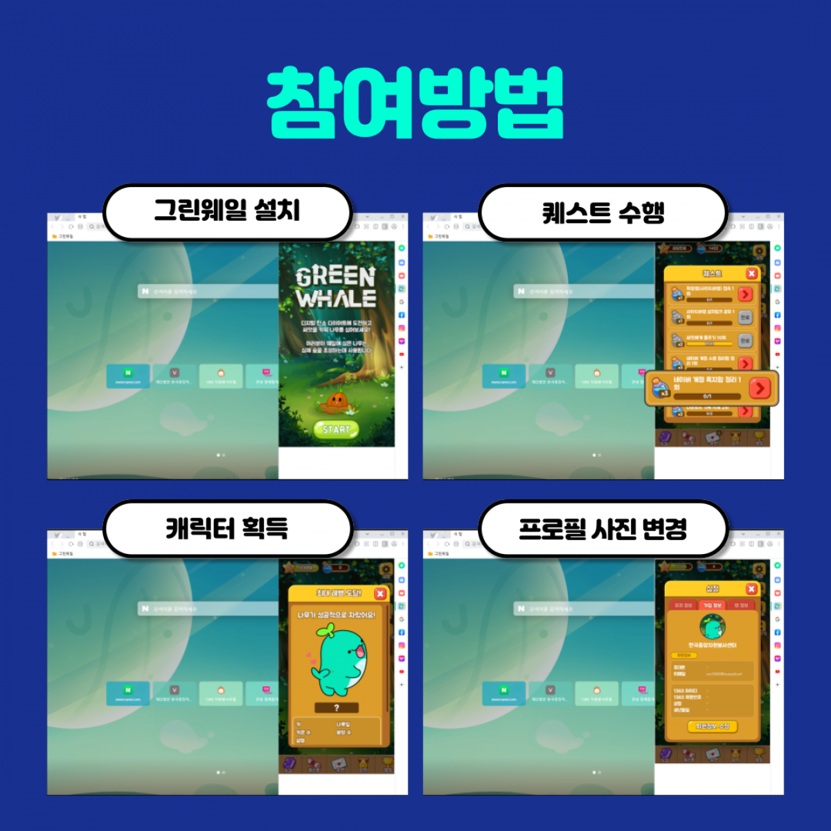 - 씨앗 육성을 통해 웨일 캐릭터 획득 및 프로필 사진 변경