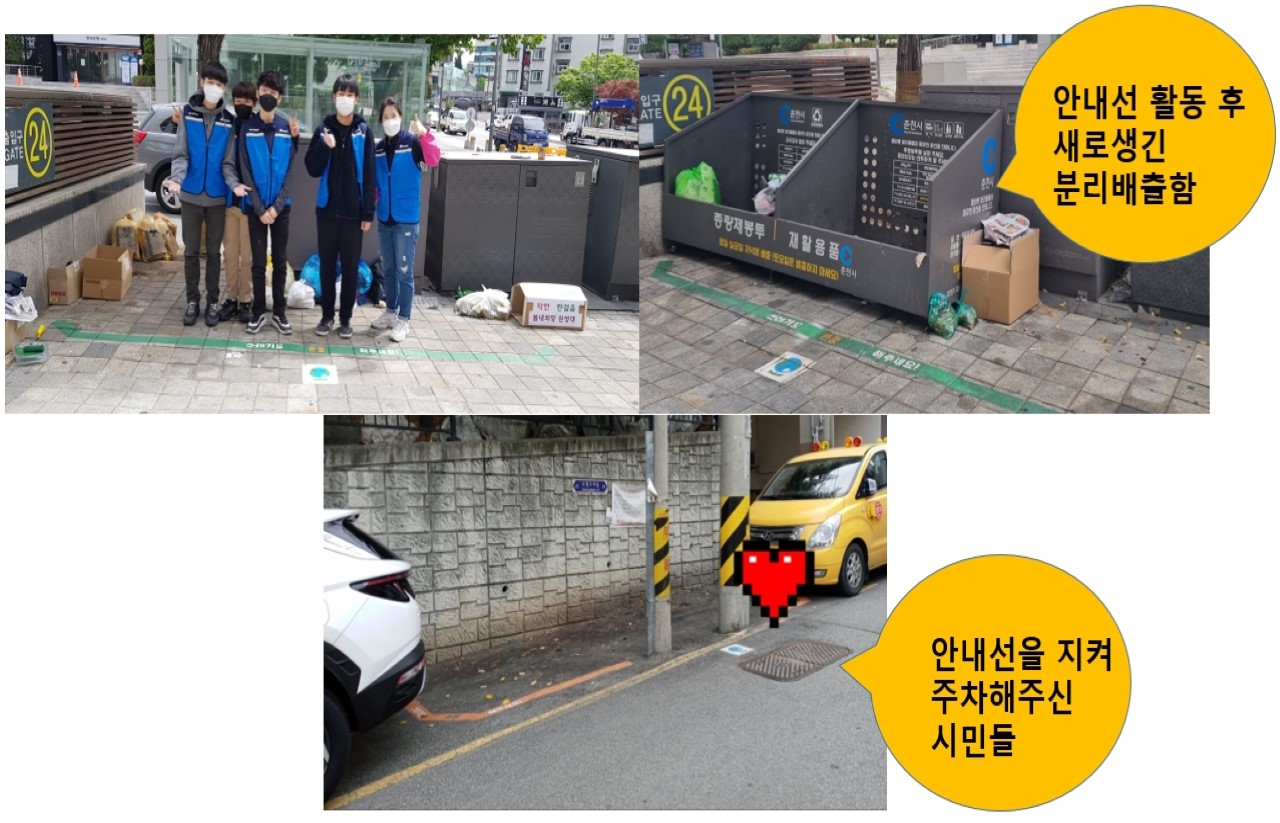 우연히 우리가 활동했던 장소를 지나는데 안내선을 지켜 주차를 해 주신 시민의 마음도 참 고맙게 느껴졌습니다. 시민들도 우리 활동을 의식 하고 함께 해 주고 있다는 마음에 정말 감사했습니다.