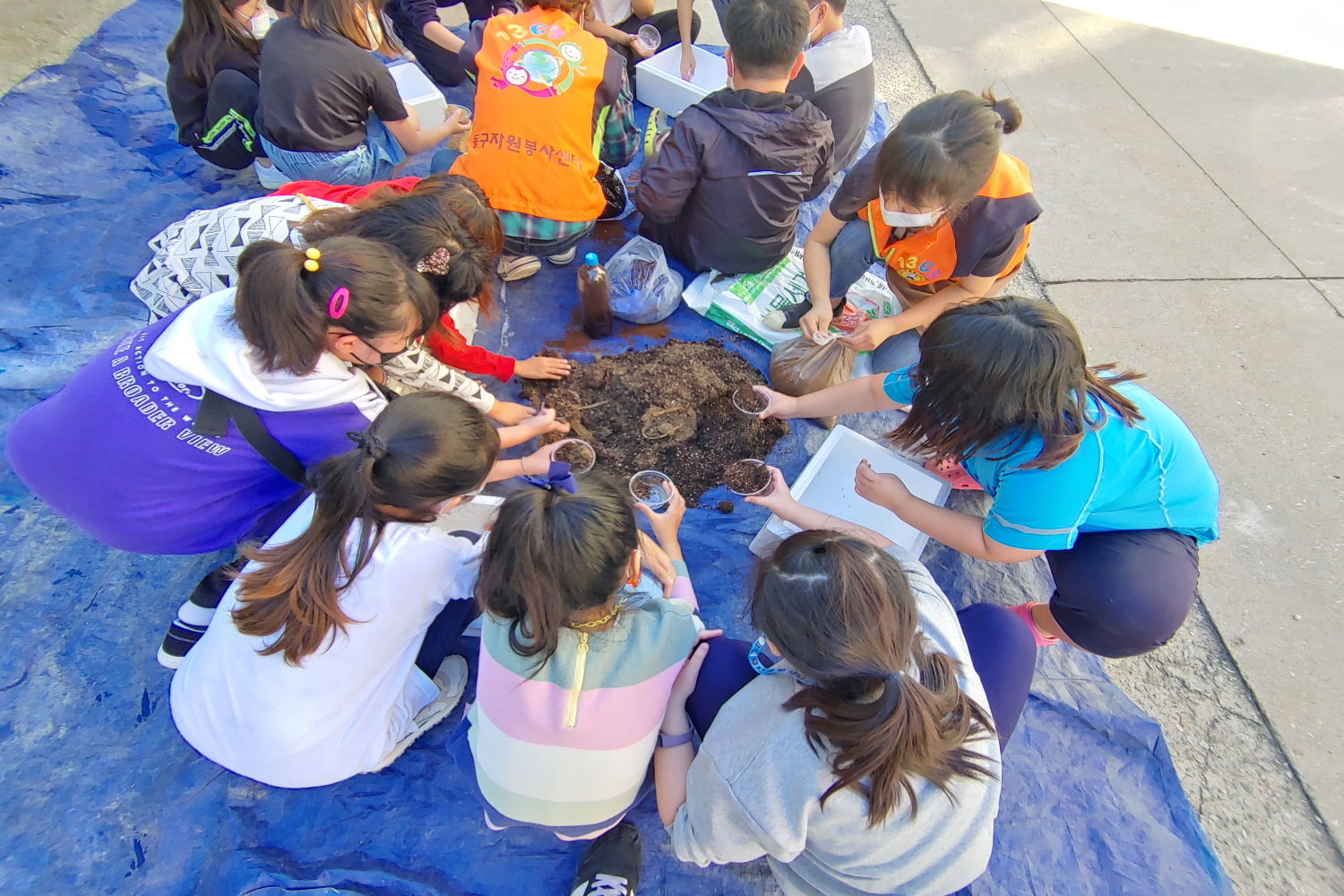 봉사활동을 참여한 학생 중 기후위기와 환경 변화에 경각심을 가지고 재차 참여하고 싶은 자원봉사자를 선정하여 월 1회 반복대상자로서 비료를 만들고 공원에 자원순환활동을 자발적으로 참여하고 있습니다.