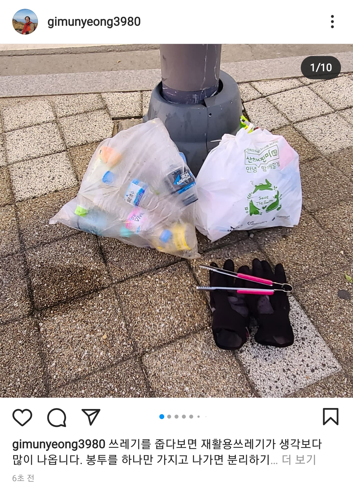고혈압과 당뇨 경계선에 있는데 담당 의사선생님이 운동을 하라고 하여 사무실 근처 좋은 산책로가 있어 걸으면서 쓰레기를 보면서 그냥 지나치는 것이 편하지 않아 운동하면서 쓰레기를 줍기 시작했습니다. 육교밑에 쓰레기가 잔뜩 쌓여 있었는데 하루에 조금씩 치우기 시작했는데 비닐봉지에 애완견변을 담아서 던진 것이 60개 이상 치웠습니다. 그 후에도 계속 누군가가 버리는데 매일 치우니까 버리는 사람도 양심이 있는지 이제는 버리지 않습니다. 화분 흙을 갖다 버리면서 속에 들어 있던 스치로플을 버리는 사람도 많았는데 이것도 모두 치우고 버릴 때마다 바로 바로 치우니까 깨끗한 환경이 유지되고 있습니다.