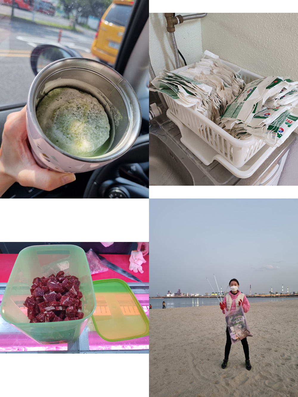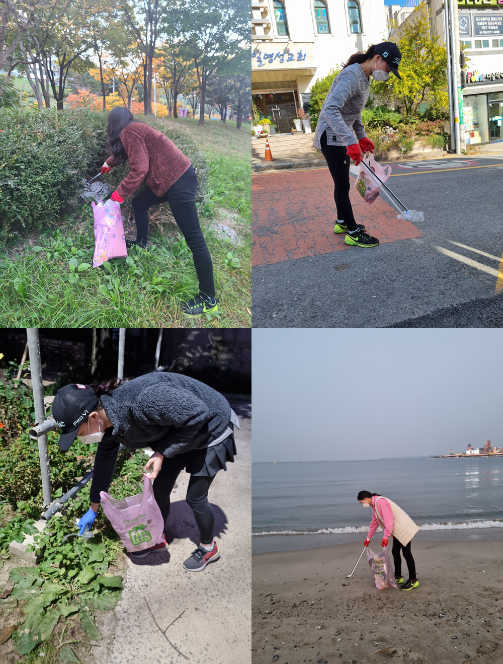 - 내가 지나간 자리가 깨끗해지는 것을 보고 뿌듯함을 느꼈으며 처음에 쓰레기를 줍기 시작할 때는 부끄러워 골목으로 장소를 정하곤 했지만, 요즘은 많은 사람이 볼 수 있도록 바다, 산책로, 행사장 등 사회적 인식을 바꾸는 데 조금이나마 도움이 되게끔 노력하고 있습니다. 그로 인해 갔던 장소에 한번, 두 번 더 가보면 주울 쓰레기가 없는 것을 발견하곤 합니다.