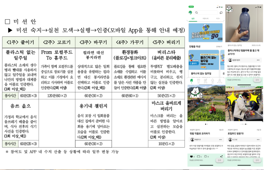 □ 주요내용 : 모바일 App(지구공)을 활용한 주간 미션 수행 및 인증