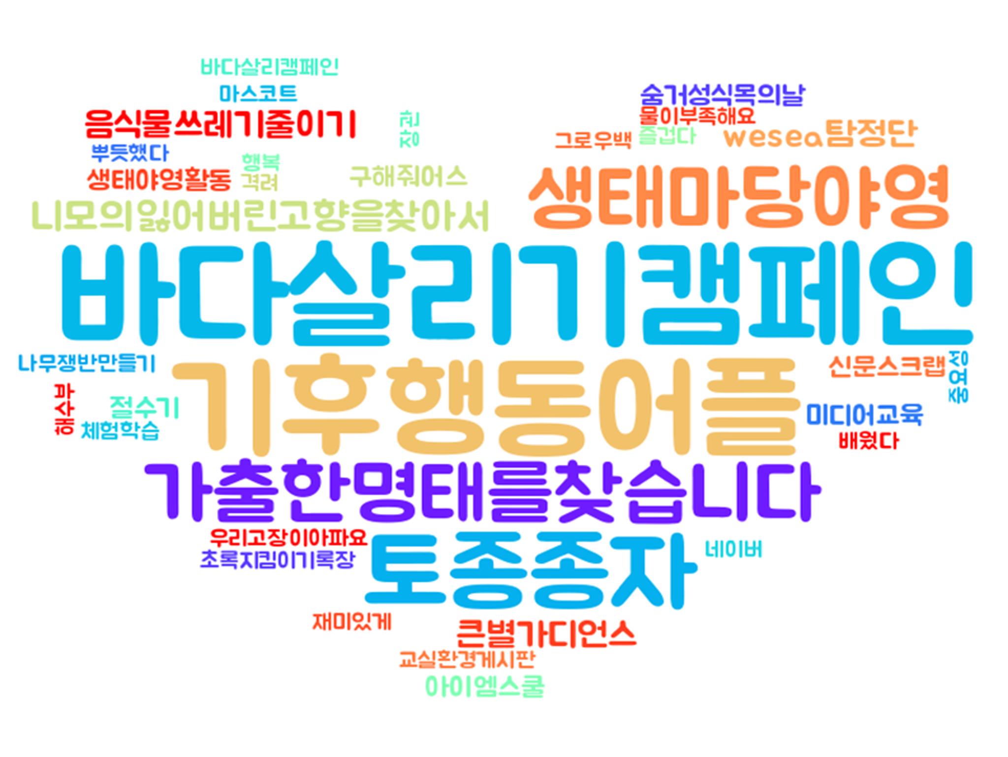 바다 살리기 캠페인은 학생, 학부모, 교사 등 캠페인 참여자를 비롯하여 지역 주민들도 아주 좋은 시선으로 호응해주셔서 큰 문제없이 마무리할 수 있었습니다. 다만 바다 살리기 캠페인 후 아이들의 편지나 서명 결과물, 전교어린이회 의결문 등 아이들의 의견들을 모아 관련 기관에 보내려고 이곳저곳 수소문해보니 대부분의 기관에서 조금씩 꺼려하는 모습을 발견할 수 있었습니다. 아무래도 좋은 취지의 일도 기관에서는 업무 부담으로 다가올 수 있기 때문이라 예상합니다. 하지만 이러한 아이들의 목소리에 지자체나 관련 기관에서 좀 더 귀 기울여주고, 응원해준다면 확산의 효과는 매우 높으리라 생각합니다. 환경보호와 실천의 열쇠는 교육에 있다고 생각합니다. 지구를 살리고, 환경을 보호하는 일의 시작인 학교 환경 교육에 지자체나 관련 기관에서 발 벗고 나서서 지원해주고, 관심가져 주시길 기대합니다.