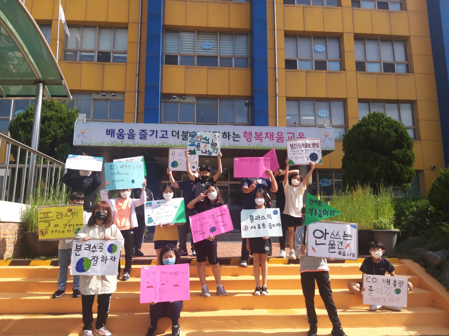 활동내용 : 우리 지역의 기후위기대응을 위한 실천방안을 알리기위해 건지초등학교 주변을 돌며 캠페인활동을 실시하였음(홍보물 만들기학교 주변 캠페인활동,학교 주변 캠페인활동) 캠페인에 사용된 홍보물은 강당주변과 급식실로 가는 통로에 1학기동안 전시하여 전교생에게 기후변화대책에 대한 의식을 고취시키고자 노력함.