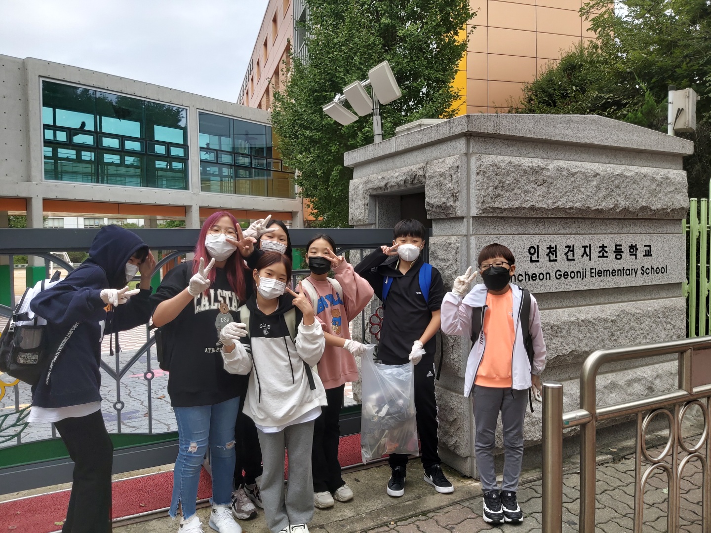 활동내용 : 우리 지역의 기후위기대응을 위한 실천방안을 알리기위해 건지초등학교 주변을 돌며 플로킹활동을 실시하였음.(학교안플로킹활동, 학교