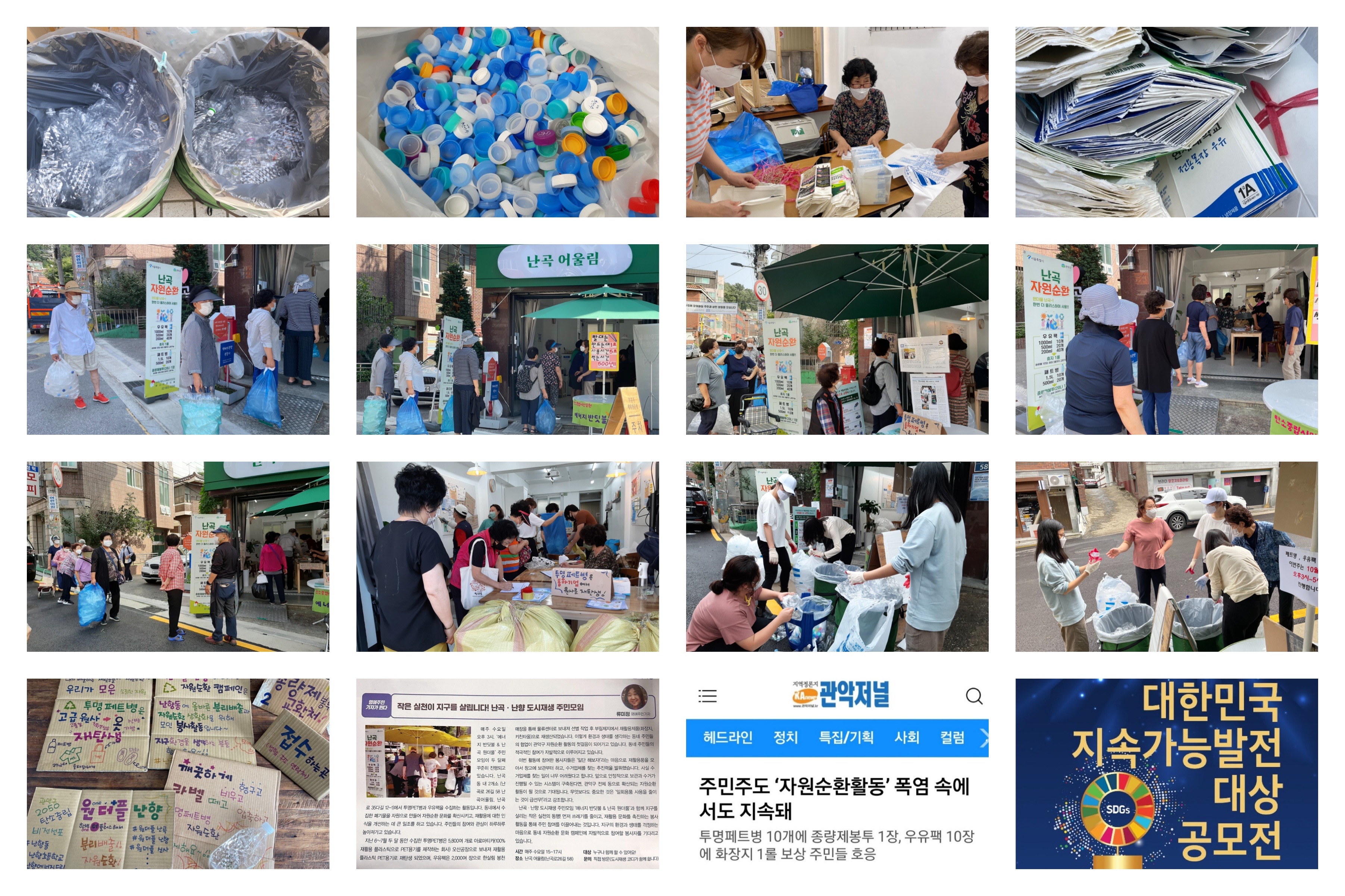 관악구 난곡동 마을 주민 동아리에서 시작된 자원순환 활동으로 투명 페트...