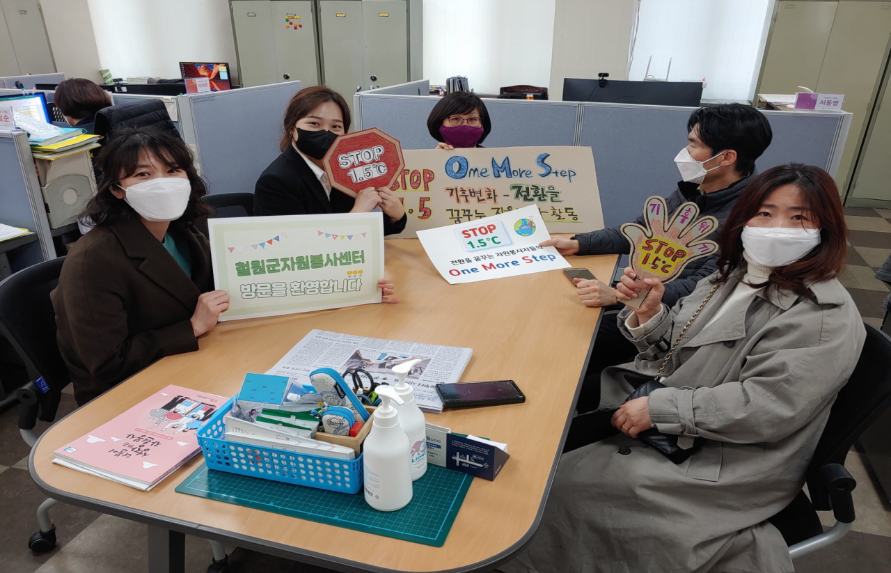 이에 시 자원순환과 및 센터를 포함한 관내 제3조직과 실천협의회를 구성하였고, 각 영역에서 생활 쓰레기 줄이기 실천 운동을 전개하기로 함. 이에 센터에서는 본격적으로 2021년 센터 등록 봉사자, 시민, 단체들과 6개의 자원순환 관련 봉사활동 프로그램을 기획하여 추진하였으며, 인류 생존 한계선인 지구의 평균 기온을 1.5℃에서 멈추기 위해 기후위기 대응에 대한 자원봉사자들의 적극적 역할을 집결시키고, 기존 자원봉사 프로그램을 탄소 중립적 관점으로 재접근하고, 기후위기 대응 활동을 더 넓고 깊게 확장시키고자 기획함.