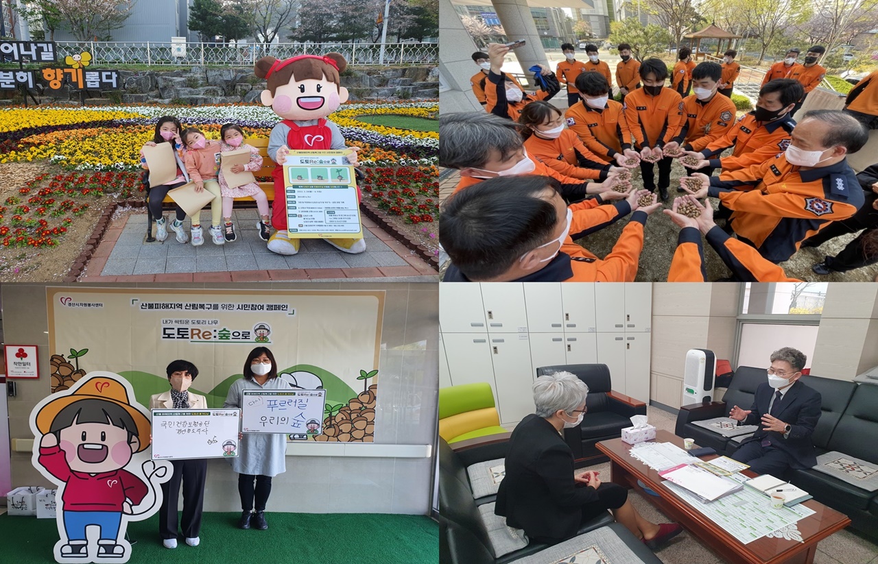 산불로 소실된 산림에 대한 시민들의 염려과 관심, 코로나시대를 겪어오며 익숙해진 홈가드닝은 많은 시민들의 참여로 나타났습니다. 2주간의 모집기간에서 일반시민을 비롯해 행정복지센터, 소방서, 어린이집, 초·중·고등학교에서 관심을 갖고 참여하여 5,000여명이「도토Re:숲으로」캠페인에 동참했습니다.