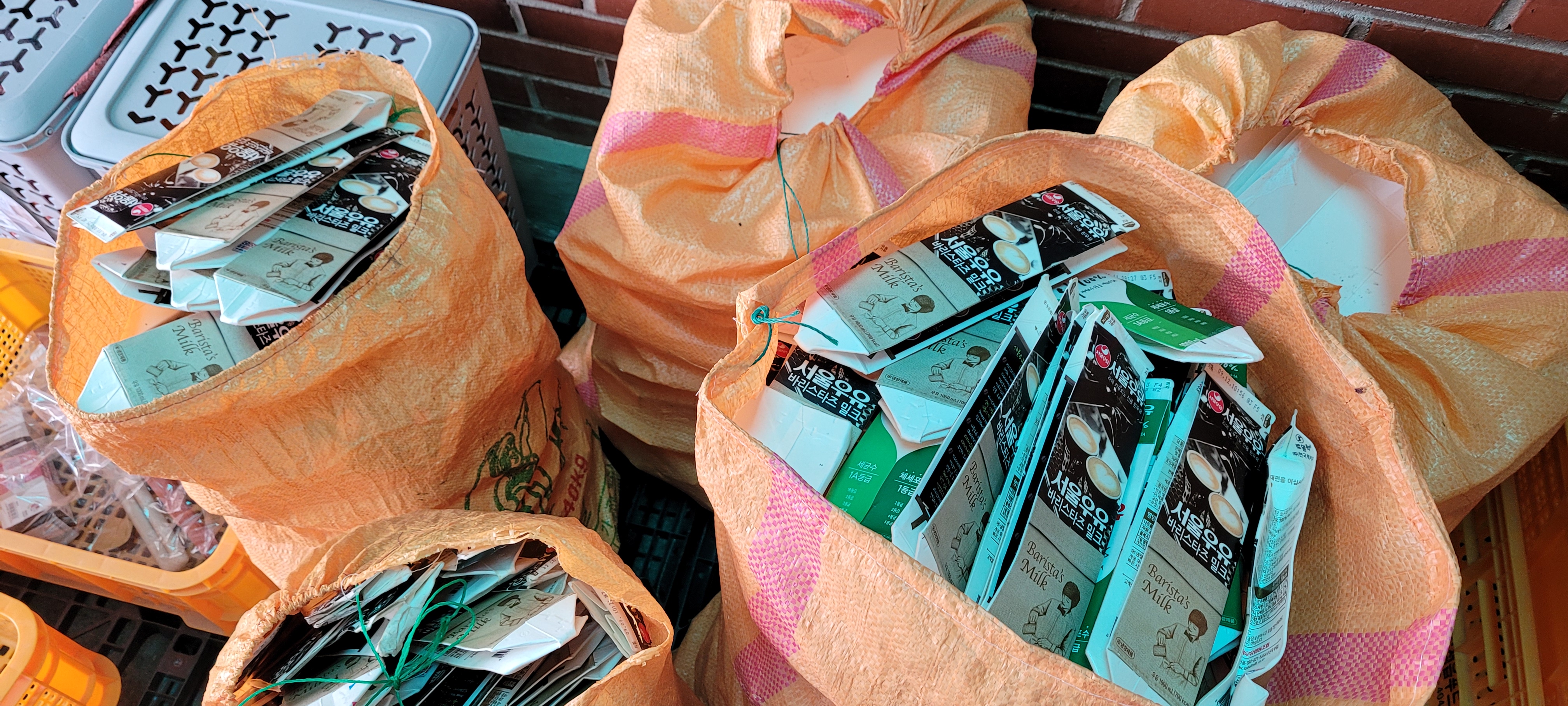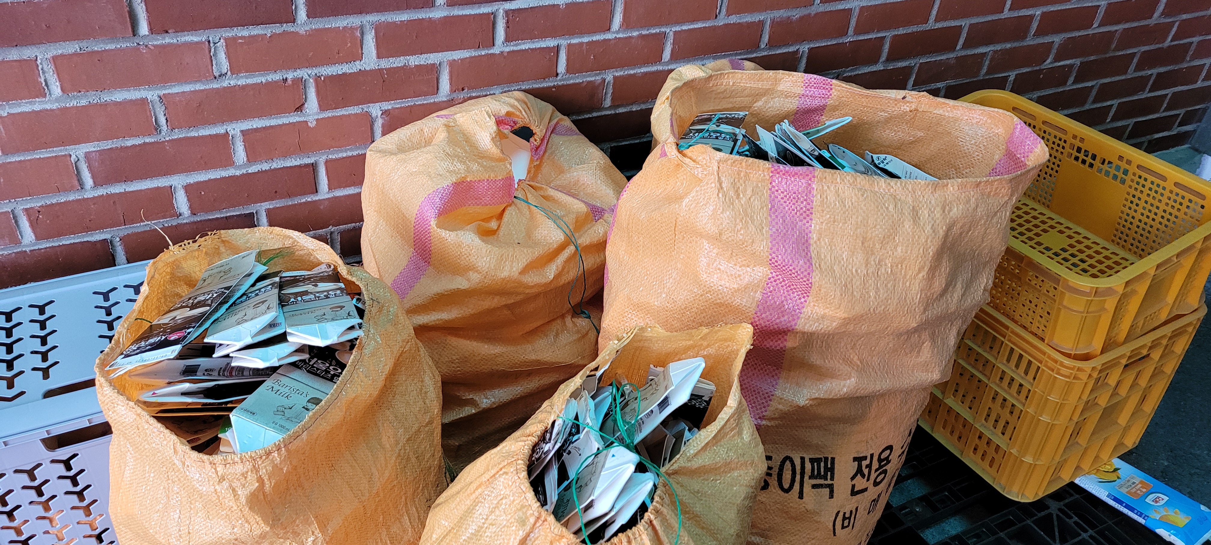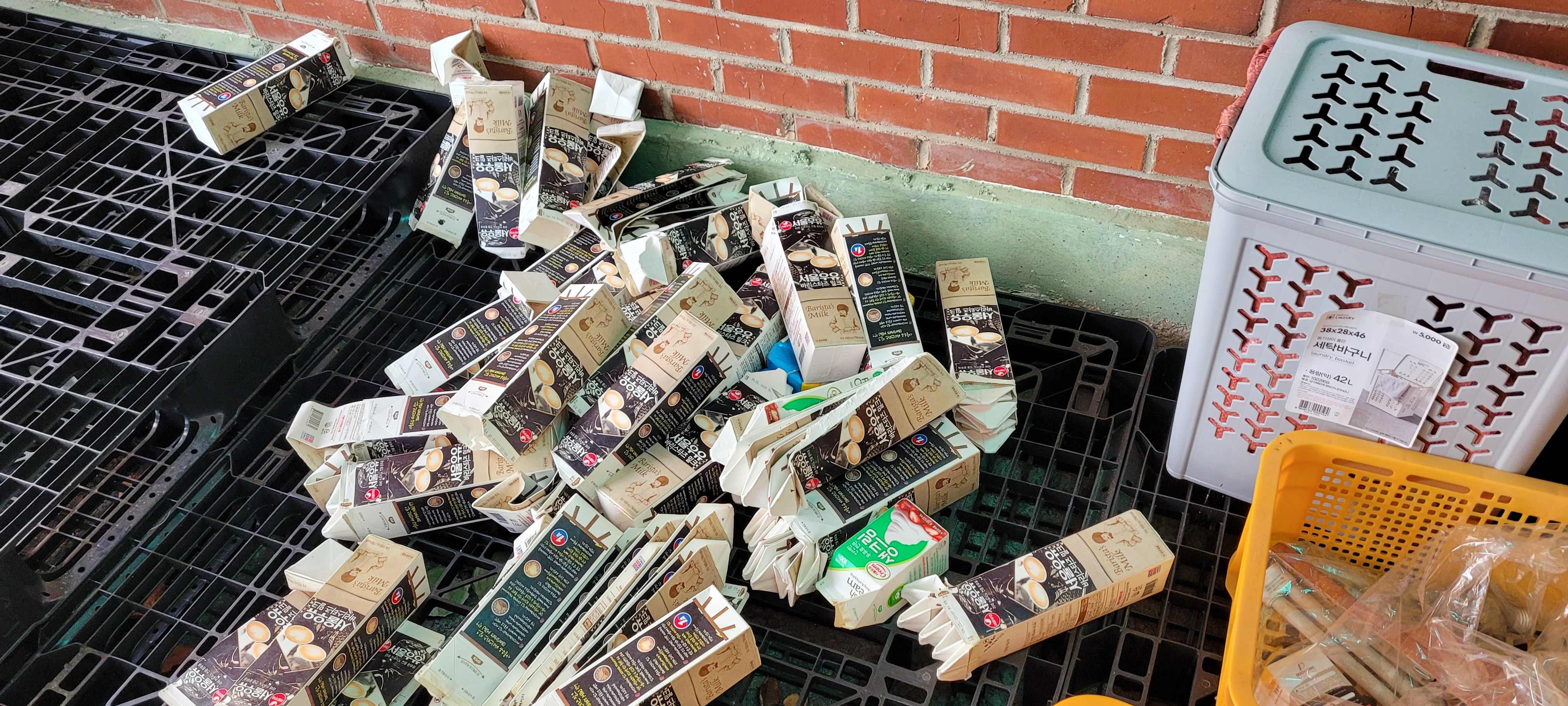 제일 큰 어려운 점은 우유 팩이었습니다. 깨끗이 씻고 말려서 분리수거함에 넣어주면 좋을 텐데 카페는 아르바이트생을 사용하는 일이 많아 우유 팩을 제대로 씻지 않고 손이 많이 간다는 이유로 펴지 않고 접어서 모아놓는 경우가 많아 남은 이물질로 인해 냄새가 나는 일이 많았습니다. 그럴 때마다 수거해온 우유 팩은 자원봉사자와 센터 직원들이 우유 팩을 다시 씻어야 하는 상황들이 발생하였습니다.