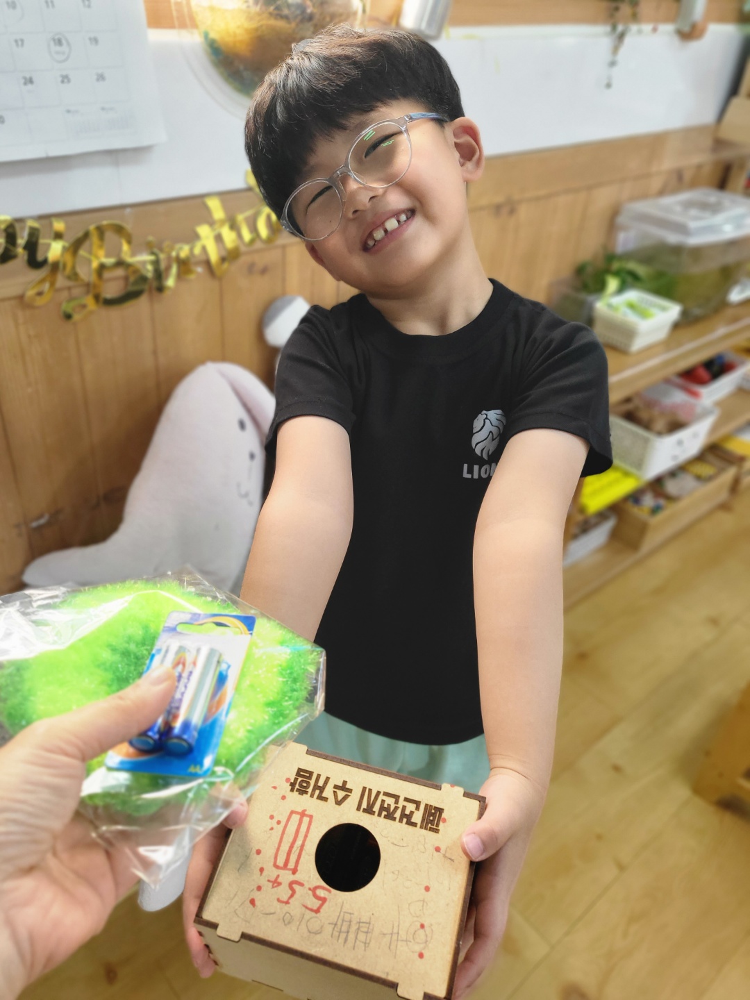 첫째로 폐건전지 수거함을 제작 배포하였는데 폐건전지 수거함은 탄소중립을 위해 천연합판으로 제작하기로 하고 자원봉사자들과 함께 조립하여 크기별로 두 종류로 나누어 개인과 상가(사무실)에 배포하였습니다.