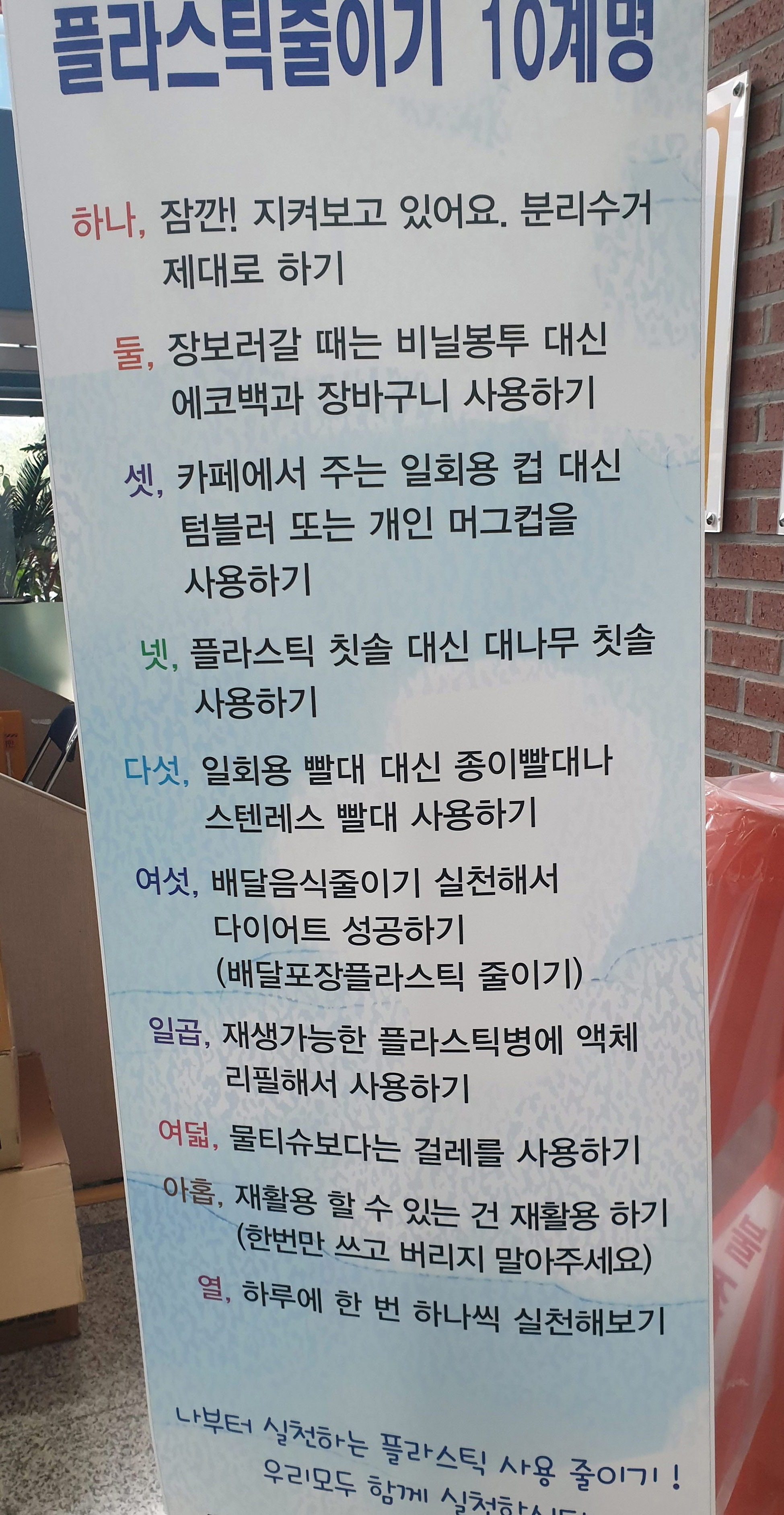 미세플라스틱을 줄이기위해 먼저 플라스틱줄이기 10계명을 만들고 청소년들이 먼저 실천하고 기록지를 적어가면서 한달동안 플라스틱 사용량을 기록 하고 회의를 통해 우리가 할수 있는 활동을 찾기시작하였습니다