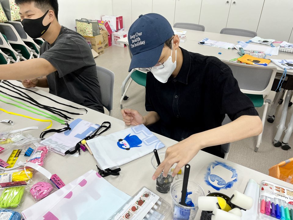 ○ 두 번째, 자원봉사활동에 대한 구체적인 사안을 함께 정하도록 하였다. 기후위기 문제의 심각성과 생활 속 탄소중립의 중요성과 관련하여 홍보방안과 참여를 높이는 의견을 반영하여 청소년이 활동의 주체가 되어 적극적이고 지속적으로 활동하여 지역민들의 환경의식을 고취시키고자 하였다. 이를 위해 청소년들의 교통편 등을 고려하여 팔달신시장으로 활동 장소를 정해 상인회와 협조하여 캠페인을 주기적으로 할 수 있도록 하고, 캠페인 활동에 사용될 친환경물품들을 정하며 가정에서 사용해보는 등 실제적인 경험들을 넓혀나갔다. 또한, 호두껍질로 만든 수세미, 대나무칫솔, 셀룰로오수행주 등과 같이 친환경완제품을 활용할 뿐만 아니라 양말목 업사이클링 방석, 폐현수막에 멸종위기인 동물을 그려넣은 파우치, 다회용이 가능한 밀랍랩을 청소년들이 직접 제작하며 캠페인활동에 의의를 새겼다.