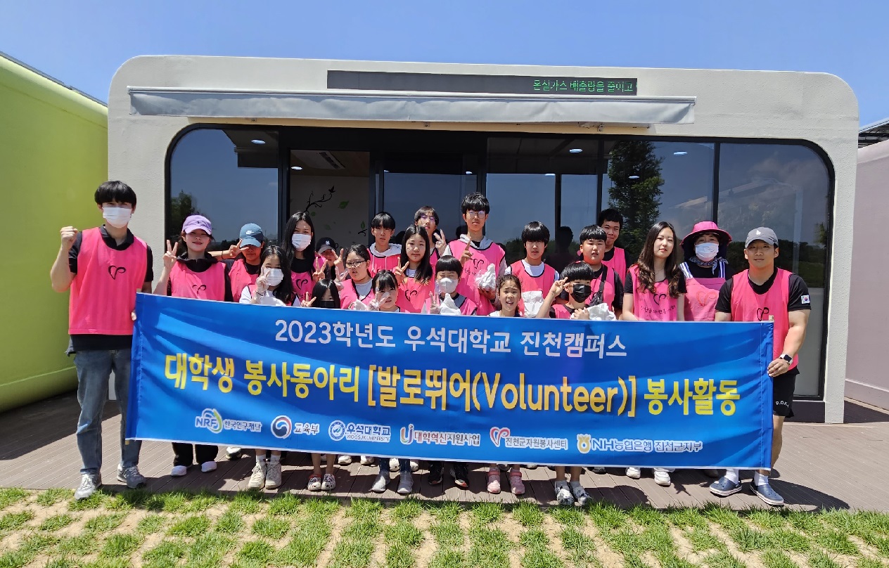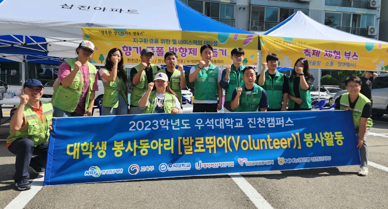 기획 단계부터 실천까지 자발적으로 이루어지고 주변 어디나 도움이 필요한 곳으로 달려가는 우석대학교 진천캠퍼스 발로뛰어(Volunteer) 봉사단.