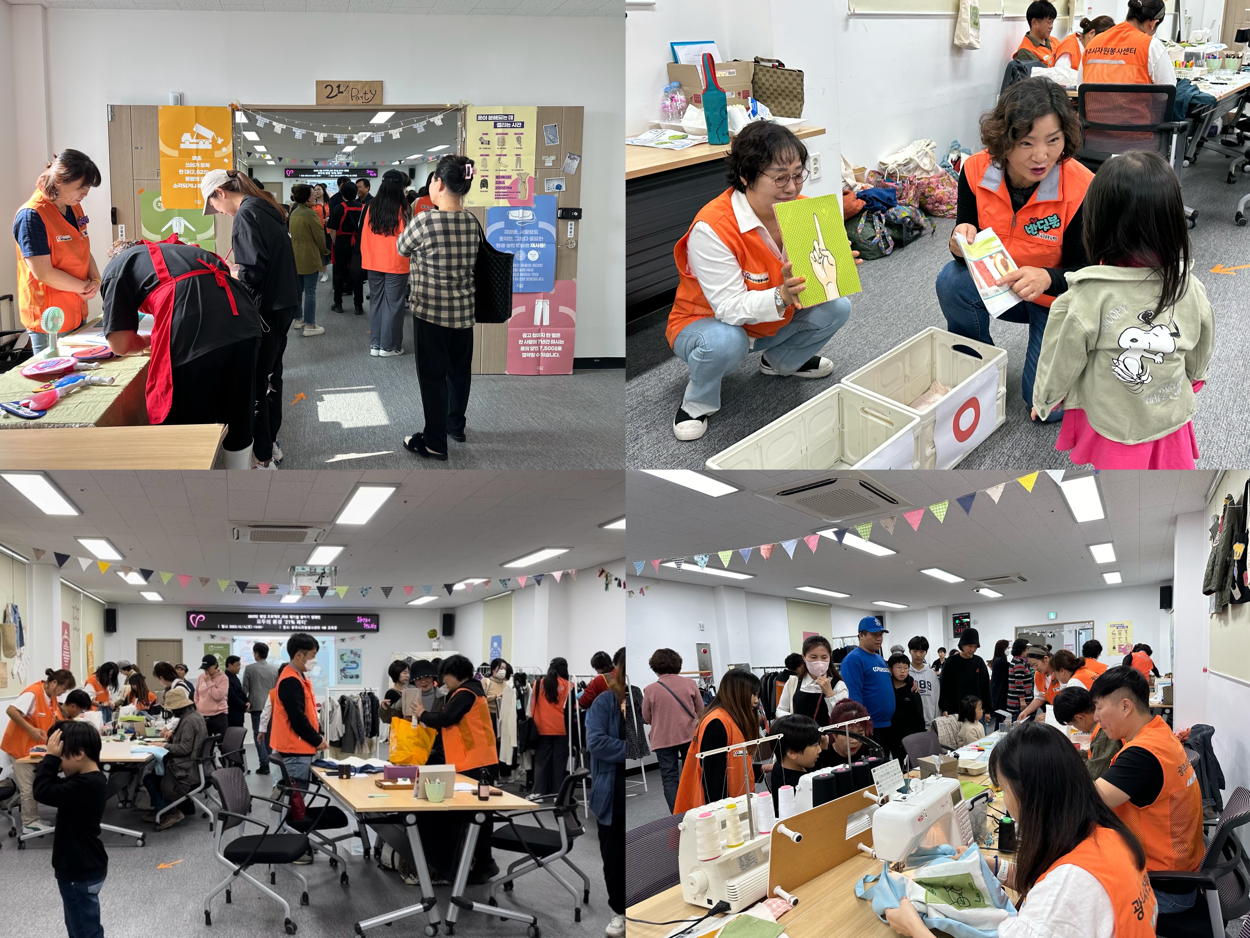 ‘반딧불 환경활동가’ 봉사단 내 역할 분배로 참여 안내, 사전 의류 접수, 현장 의류 접수, 참여자 명단 접수, 의류 교환 작업, 환경교육 및 환경 체험놀이 부스별 담당자를 지정하여 진행했으며, 타 봉사단을 연계하여 협력하여 의류리폼 부스, 포토존 즉석사진 인화 부스 등 다채롭게 즐길 수 있는 요소를 곳곳에 넣은 환경 캠페인이었습니다.