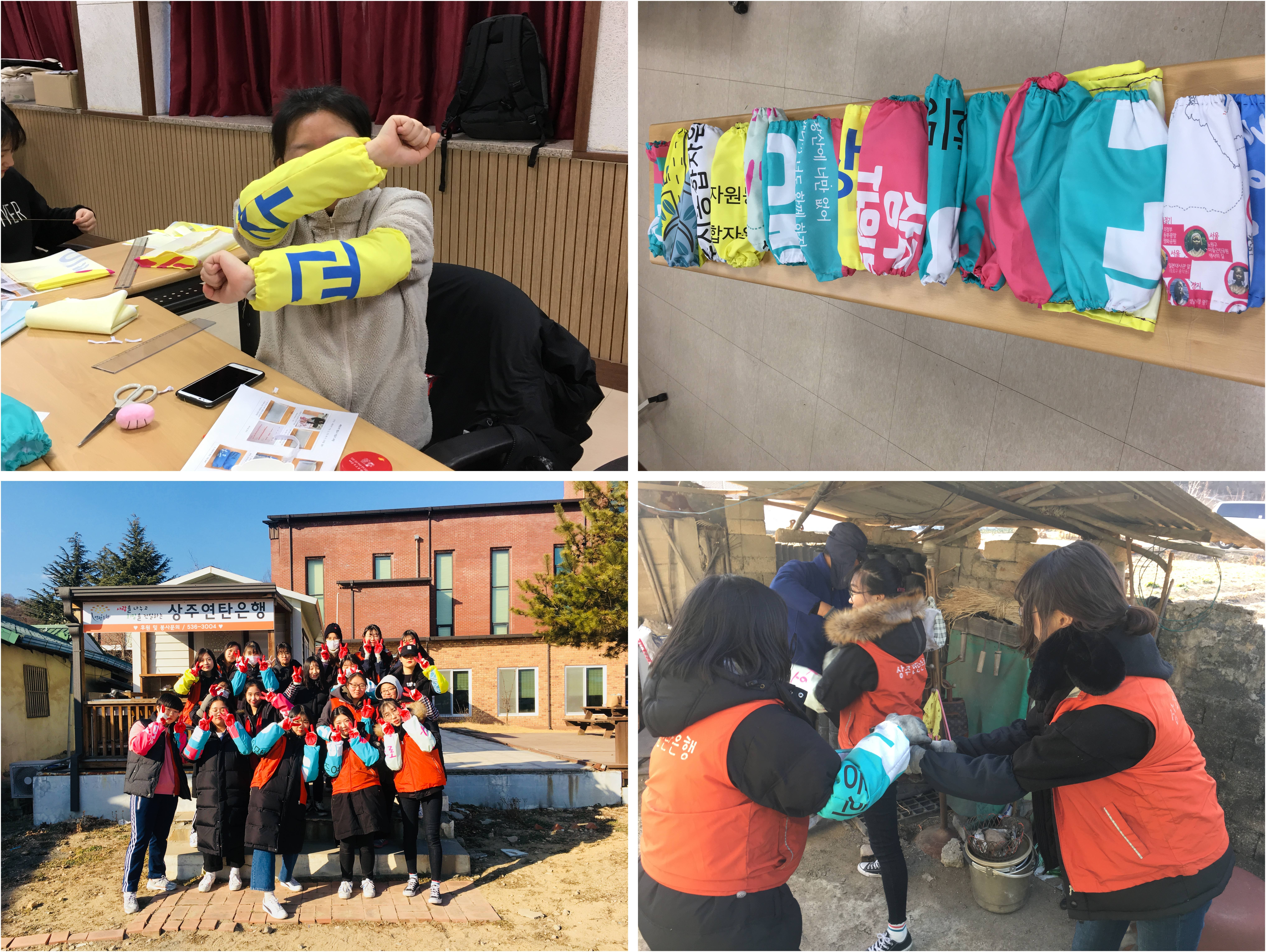 - 폐현수막을 팔토시, 장바구니, 핸드폰 가방 등으로 업사이클링
