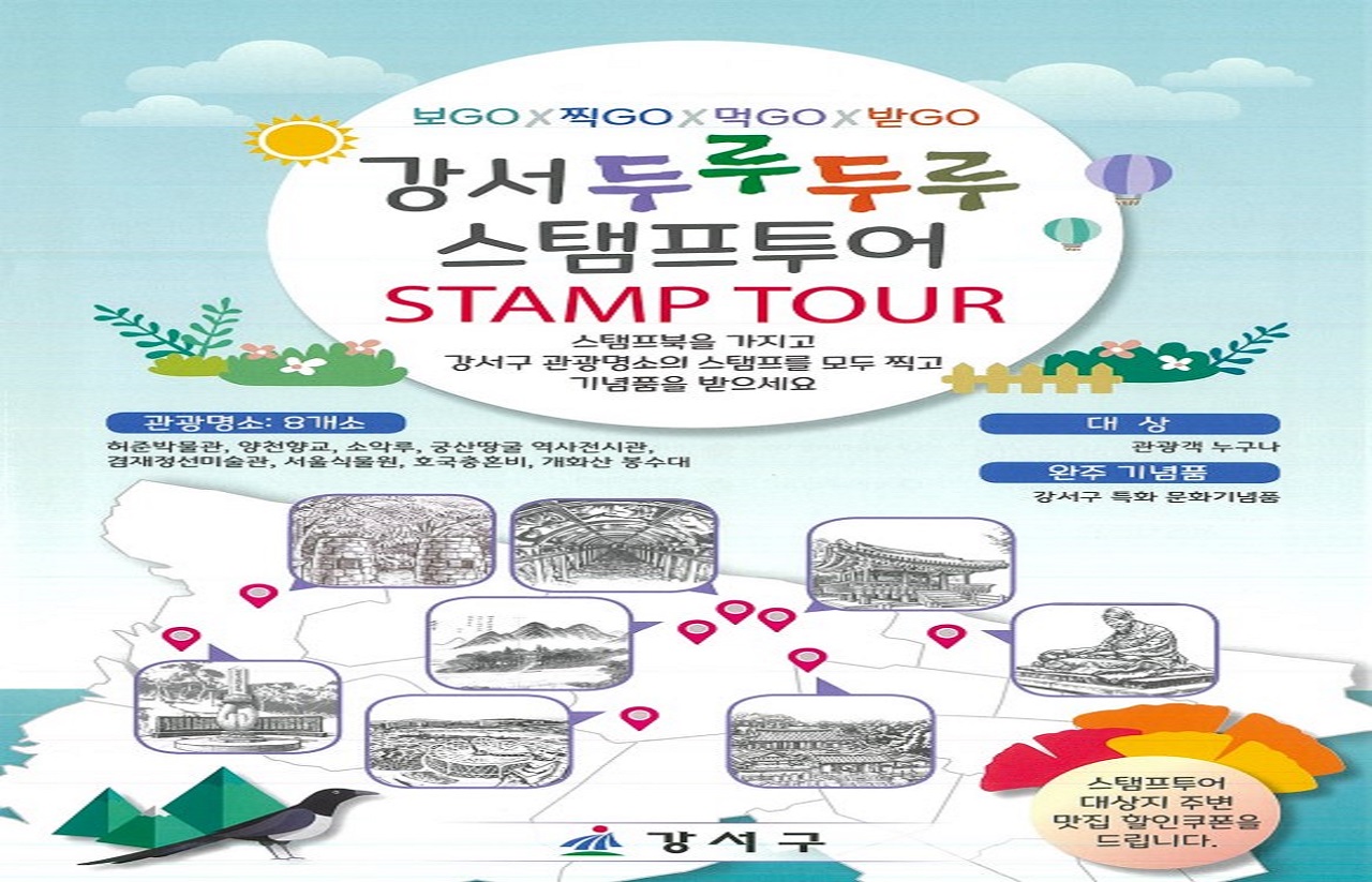 - 강서구의 대표적인 관광 명소로 구성된「강서 두루두루 스탬프 투어」를 참고하여 활동 장소를 특정하여 자원봉사도 하고 강서구의 역사적 문화유산 및 관광자원에 대한 관심을 높이고자 함
