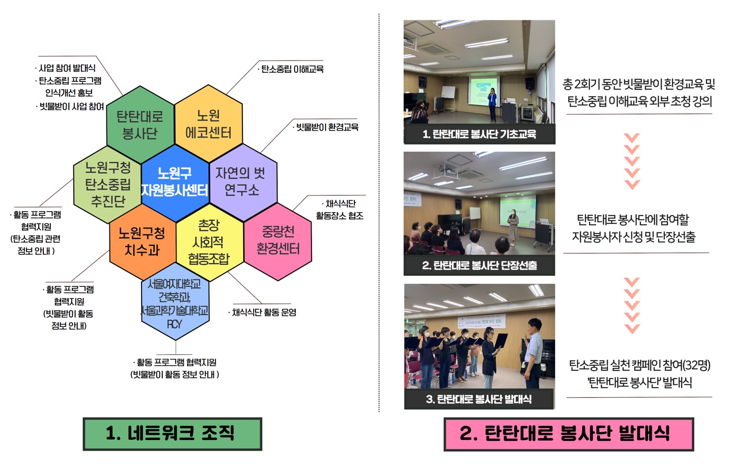 ‘자원봉사’와 ‘탄소중립’을 연결하여 지역사회의 네트워크를 연결하고, 환경 캠페인을 통해 지역사회 환경문제에 대한 인식개선과