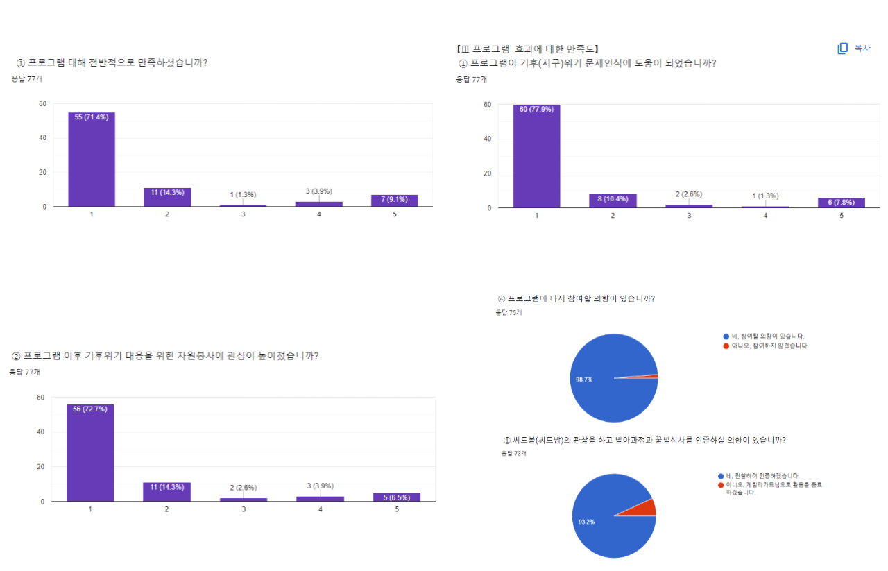 2) 프로그램 이후 기후위기 문제 인식에 도움: 매우도움 77.9% / 도움 10.4%