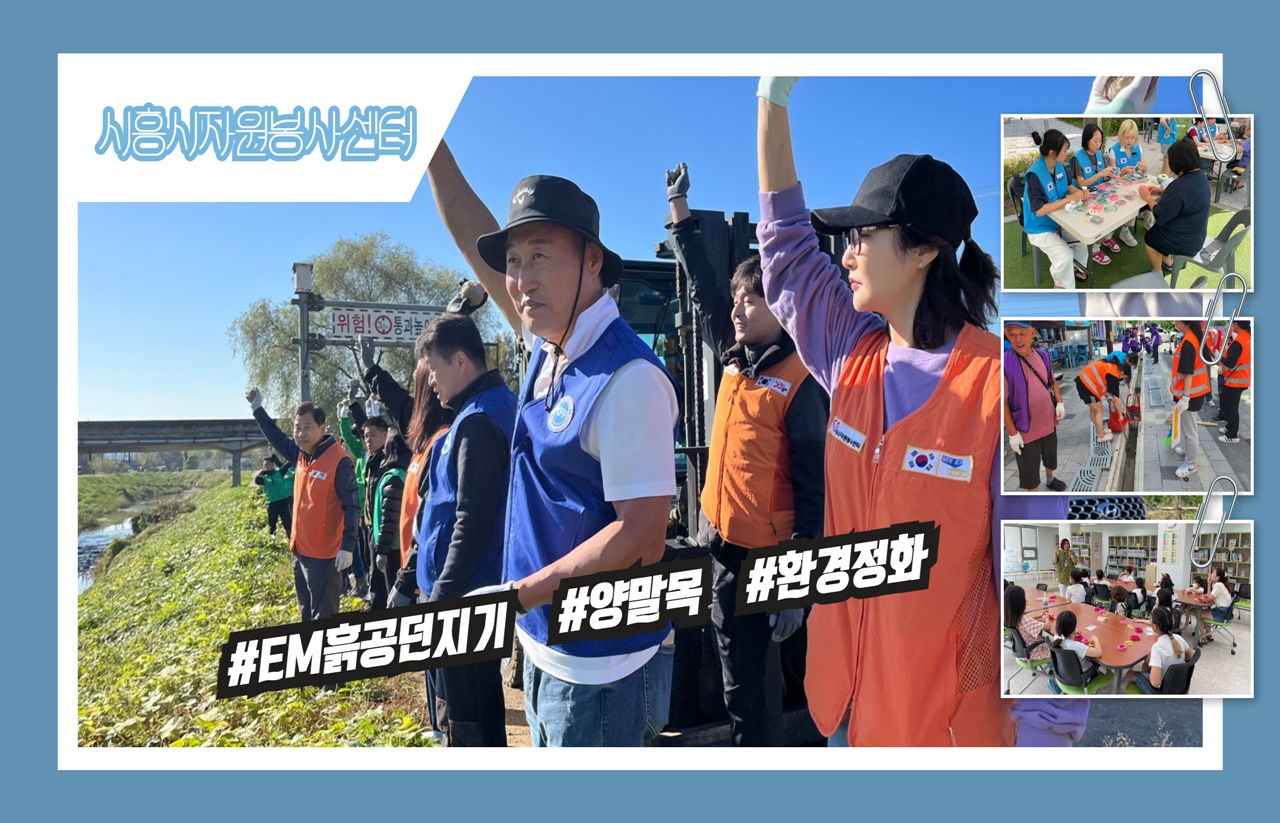 지역의 마을 공동체가 함께 EM 흙공 캠페인 및 목감천 일대 수중 정화에 참여해, 우리가 쓰는 자연을 소중히 아끼는데 몸소 실천하며 앞장서기에 힘쓰고 있어요. 지역 축제와 행사에는 대학 청년 봉사단과 여러 봉사단체와 협업하여 참여해 현장에서 시민들과 함께 하며 환경과 자원봉사에 대한 인식을 확산하고 있어요!