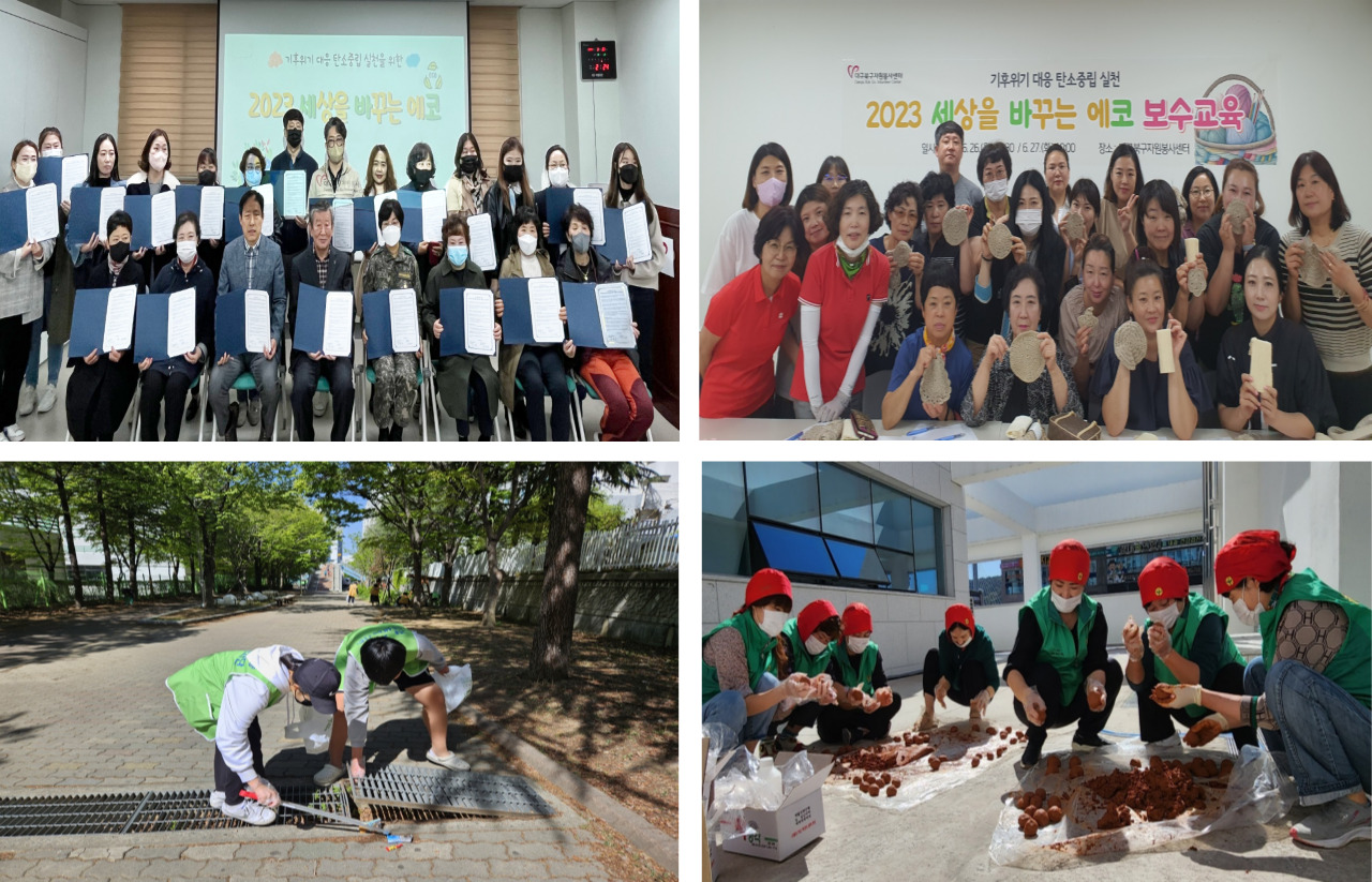 단체별 삼삼오오 모여서 활동을 하거나 각자 가정에서 자율적으로 제로웨이스트 활동을 하였습니다. 삼베실 수세미를 만든 후 센터로 제출하거나 이웃, 주민들에게 나눔을 실천하여 탄소중립에 관해 알리며 저탄소 실천을 권장하는 기회가 되었습니다.