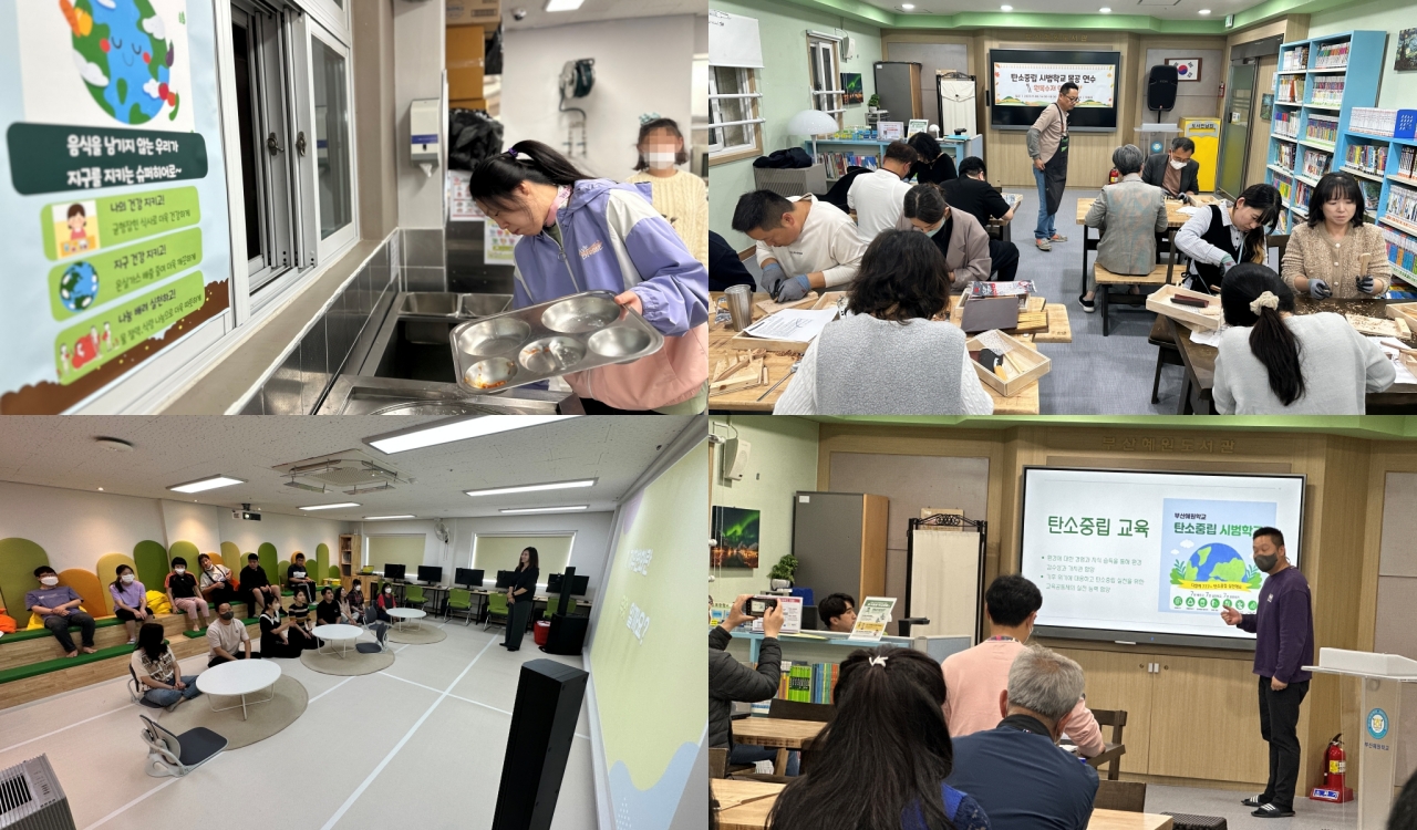 이러한 노력이 빛을 발해 탄소중립 시범학교 운영 후 학교의 문화가 조금씩 달라지는 것을 볼 수 있었습니다. 각종 연수물은 종이 출력물을 사용하기보다 태블릿pc에 다운받아 사용하고, 개인컵 사용이 일상화가 되었습니다. 급식실에서는 이전보다 잔반이 확실히 줄었다고 하며, ‘탄소중립 실천’이라는 우리의 구호가 유행처럼 번지기도 했습니다.