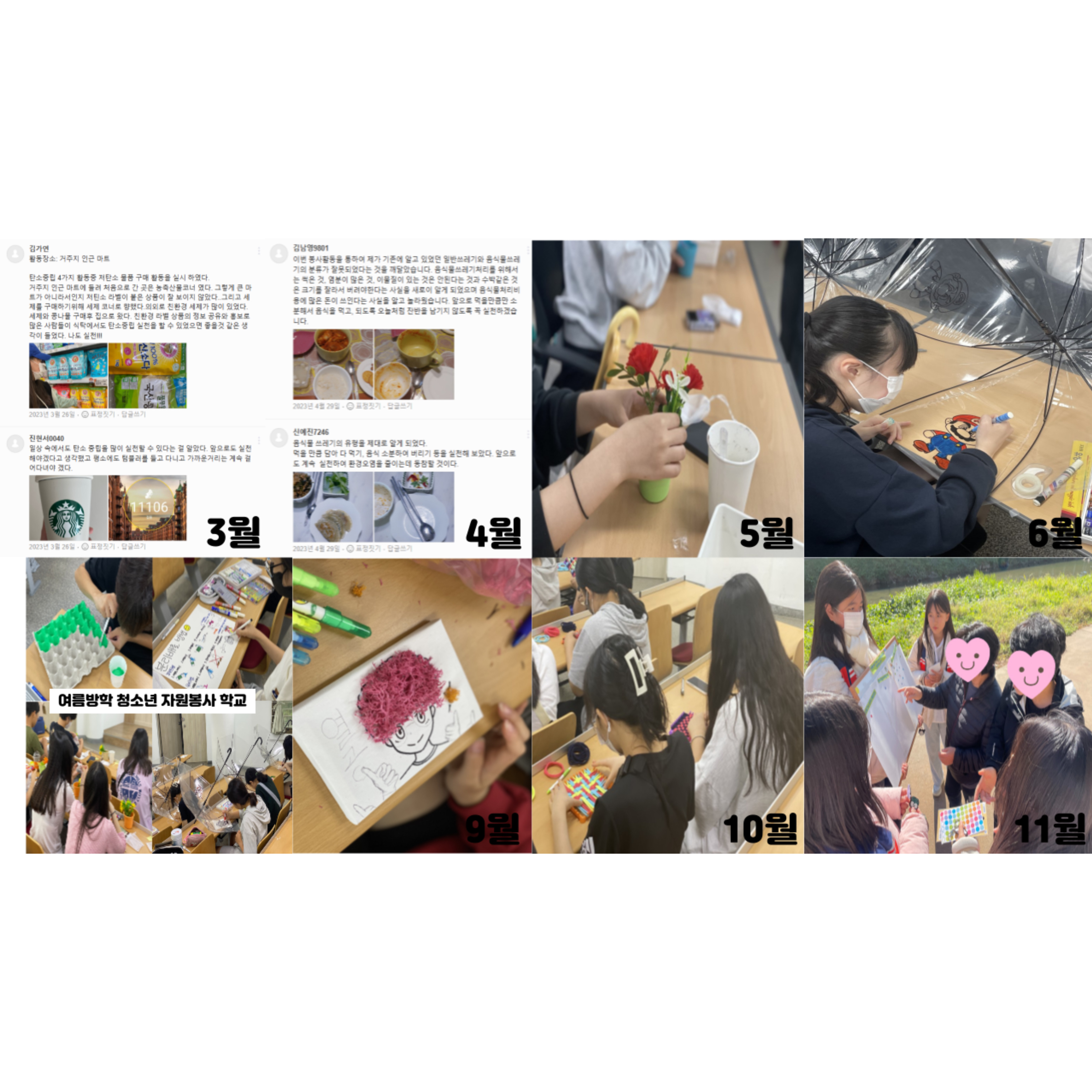 매달 1회, 여름방학 청소년 자원봉사학교를 포함해 3월부터 11월까지 활동을 진행하면서