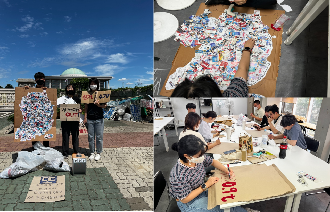 - 선거 운동 기간의 쓰레기 문제를 알리는 퍼포먼스 진행