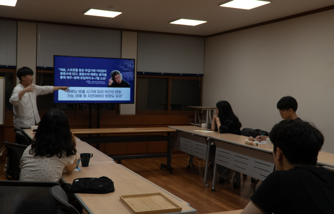 작년 강남에 침수 피해를 입은 원인이 빗물받이에 담배꽁초가 많아 막혔기 때문에, 빗물받이를 깨끗하게 정화하는 플로깅 활동 진행