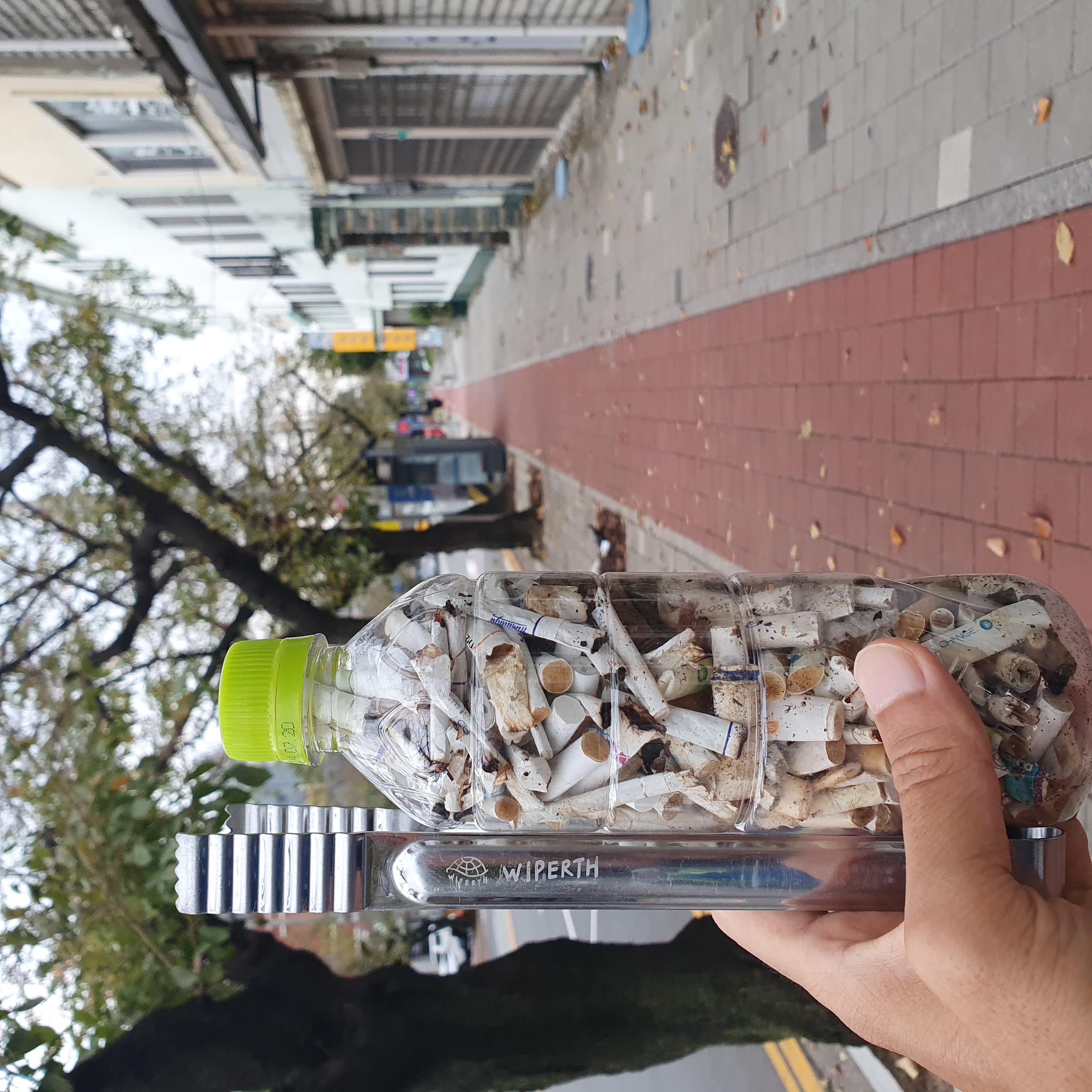 약 2년 5개월동안 출·퇴근길(편도 4.5km)을 달리면서 또는 날씨 등으로 뛰지 못할때는 대중교통 사용후 걸으면서 길거리에 버려진 담배꽁초를 줍게 되었습니다.